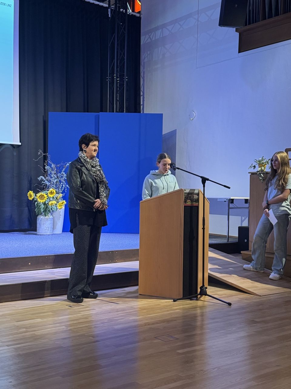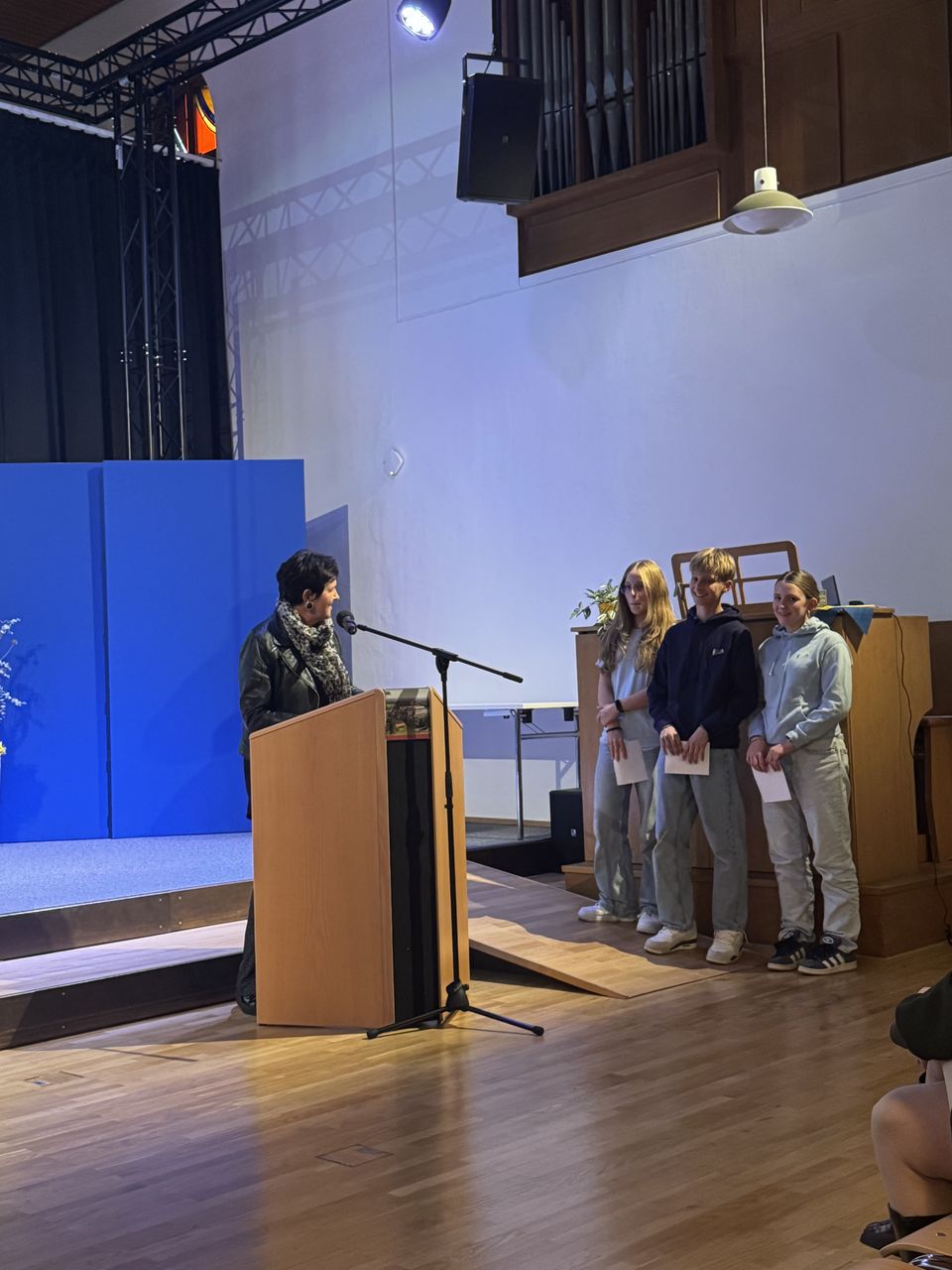 Die Schüler:innen Leni, Magdalena und Leonard aus der 3b-Klasse vertraten unsere Schule mit großem Engagement und trugen aktiv zur Präsentation bei – herzlichen Dank für euren Einsatz!