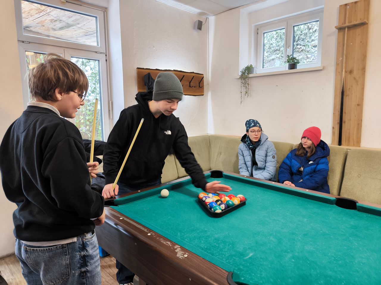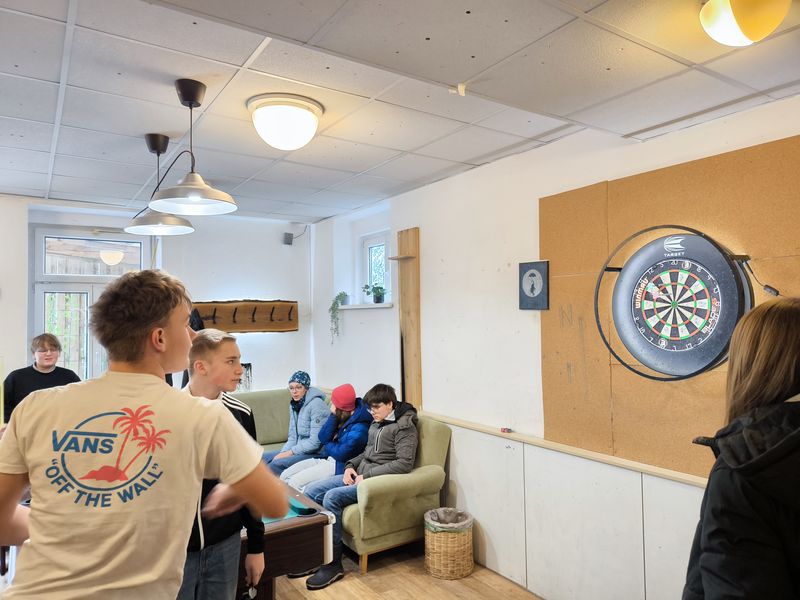 Die Schülerinnen und Schüler nutzten die Gelegenheit, verschiedene Spielmöglichkeiten auszuprobieren – darunter Dart, Billard, Wuzzeln und Gesellschaftsspiele.