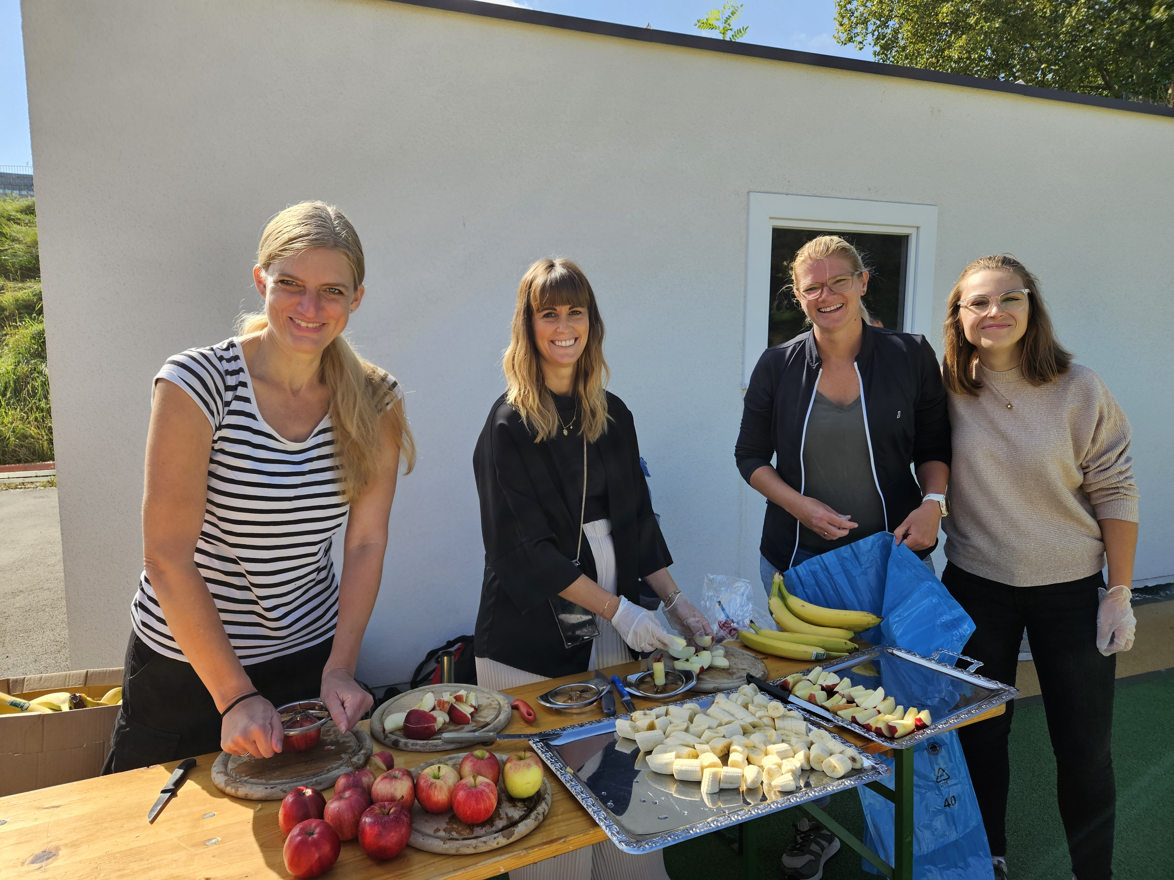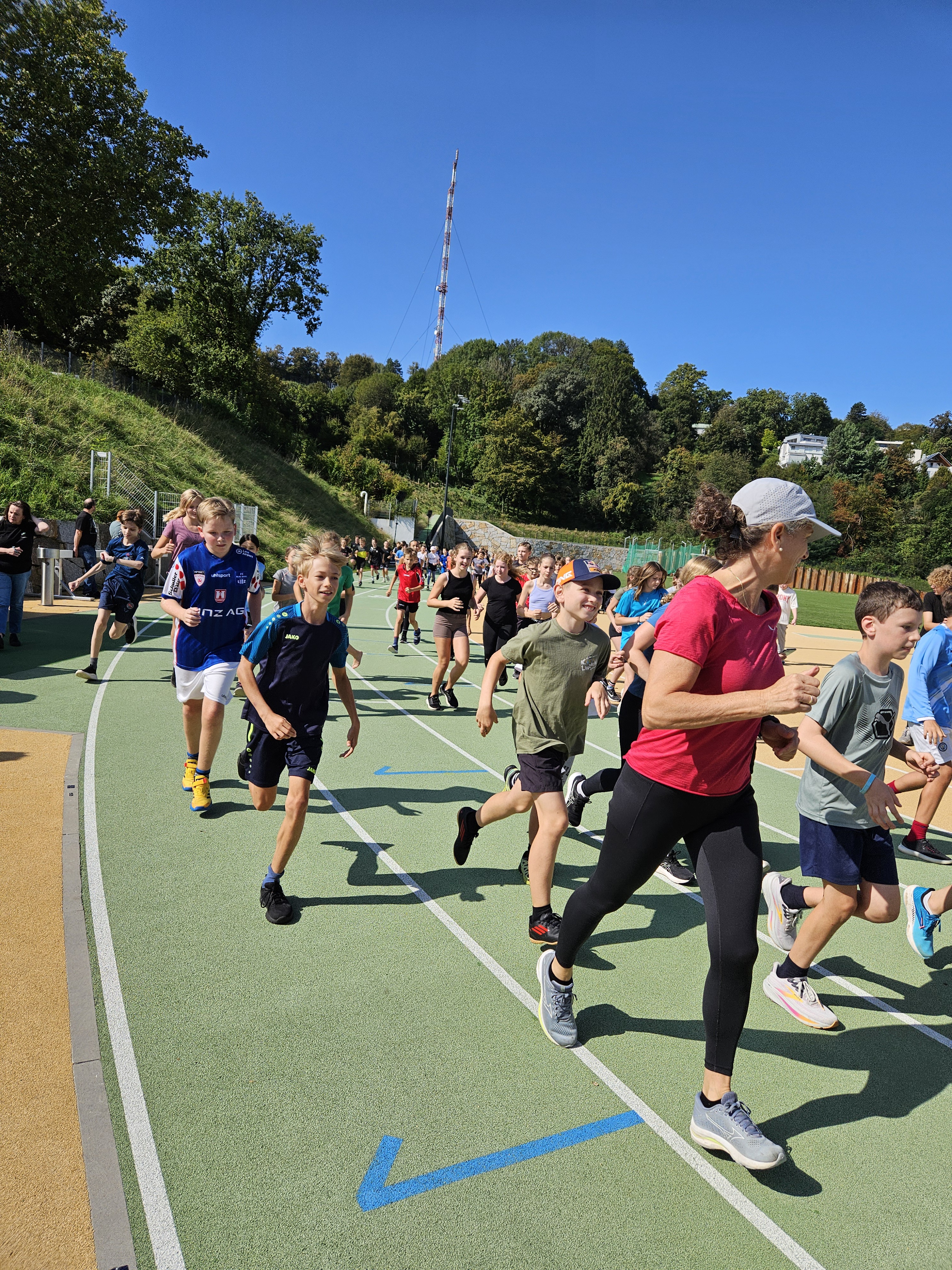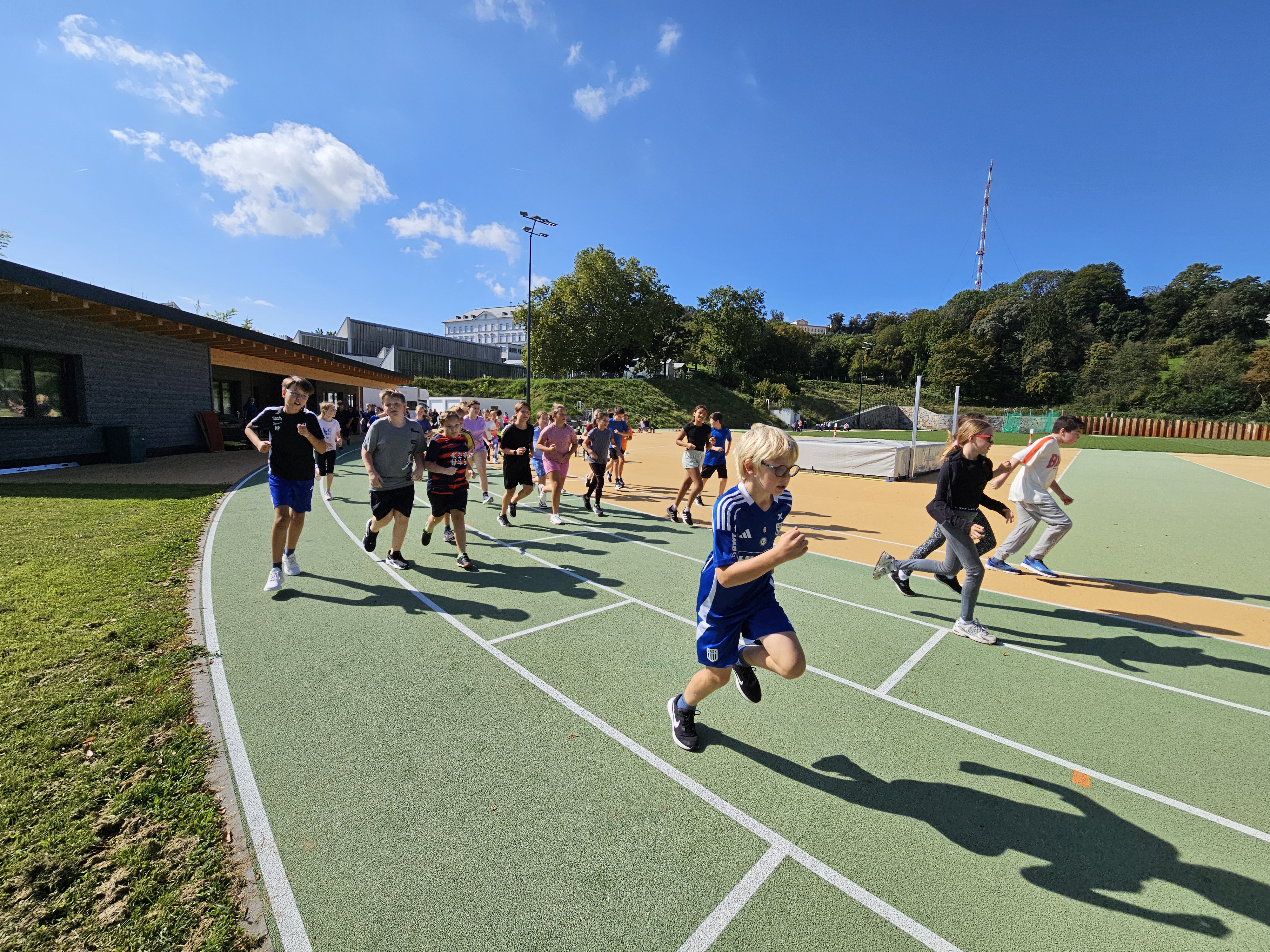 Strahlender Sonnenschein, motivierte Kinder und eine tolle Stimmung: Auch heuer nahmen unsere Schülerinnen und Schüler am Charity-Lauf teil und zeigten, dass Sport und soziales Engagement wunderbar zusammenpassen. Auch einige Lehrkräfte und Eltern begleiteten sie motiviert auf ihren Runden. Eine Stunde lang liefen alle auf der modernen Leichtathletikanlage und wurden durch mitreißende Musik sowie anfeuernde Eltern und Lehrkräfte zusätzlich angespornt. Mit der Unterstützung der Young Caritas stellten wir auch heuer wieder gesundes Obst zur Stärkung bereit.