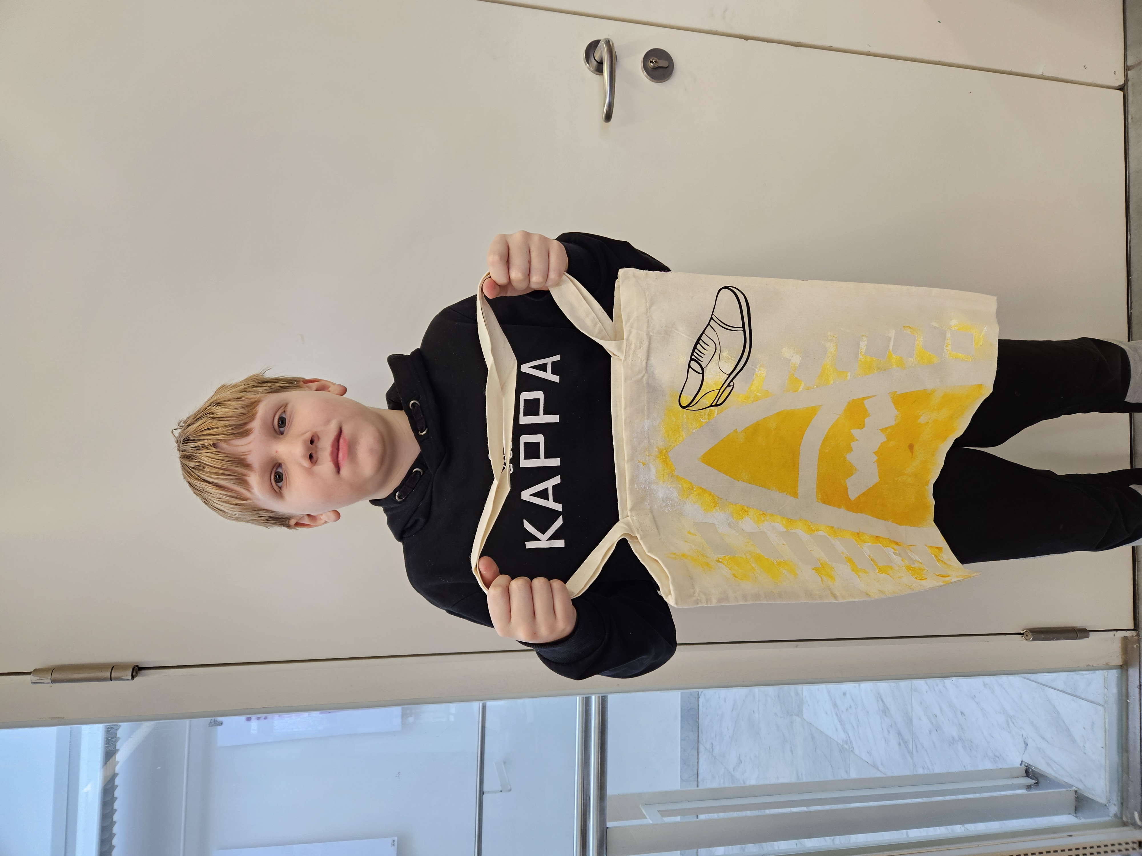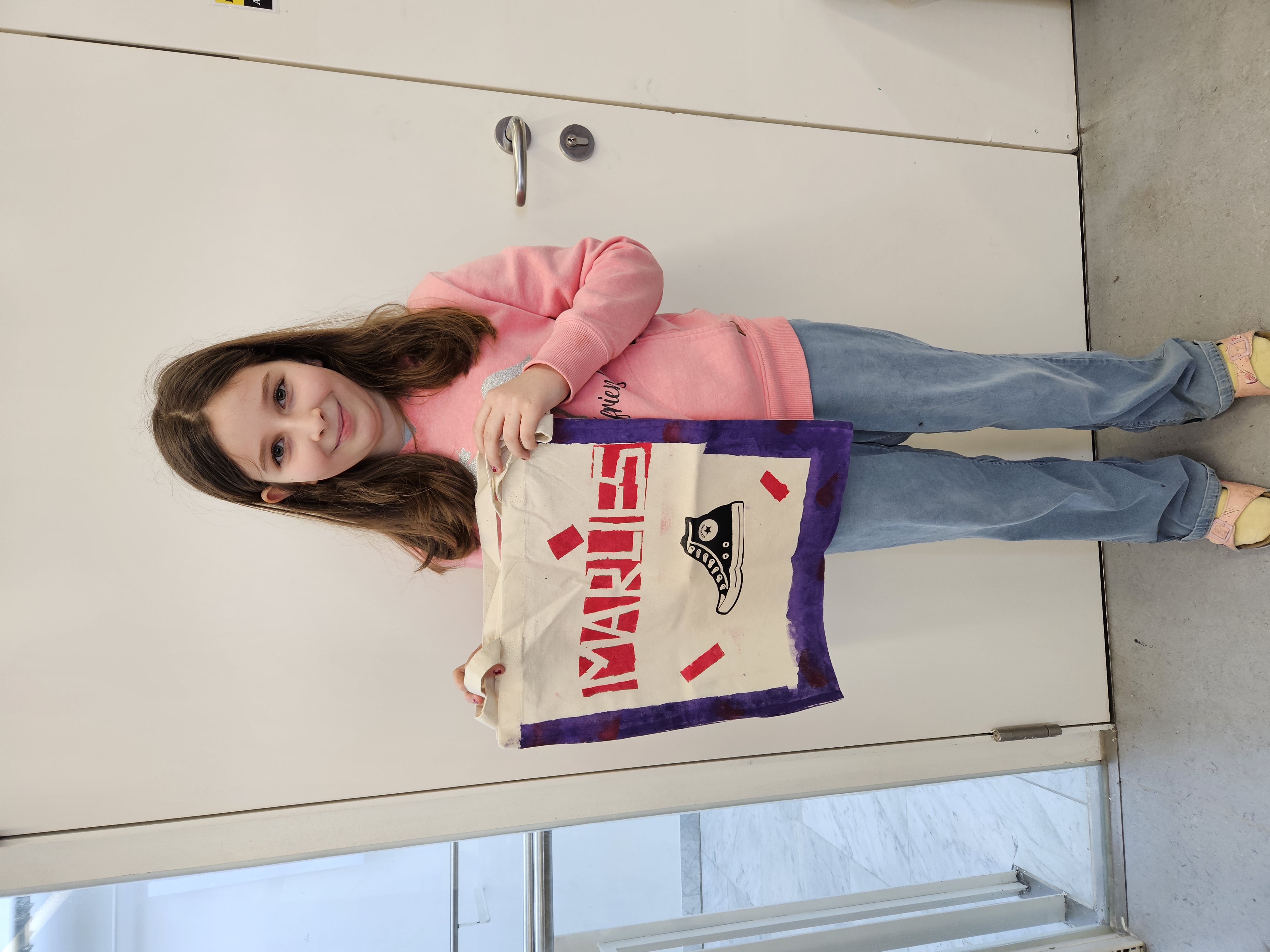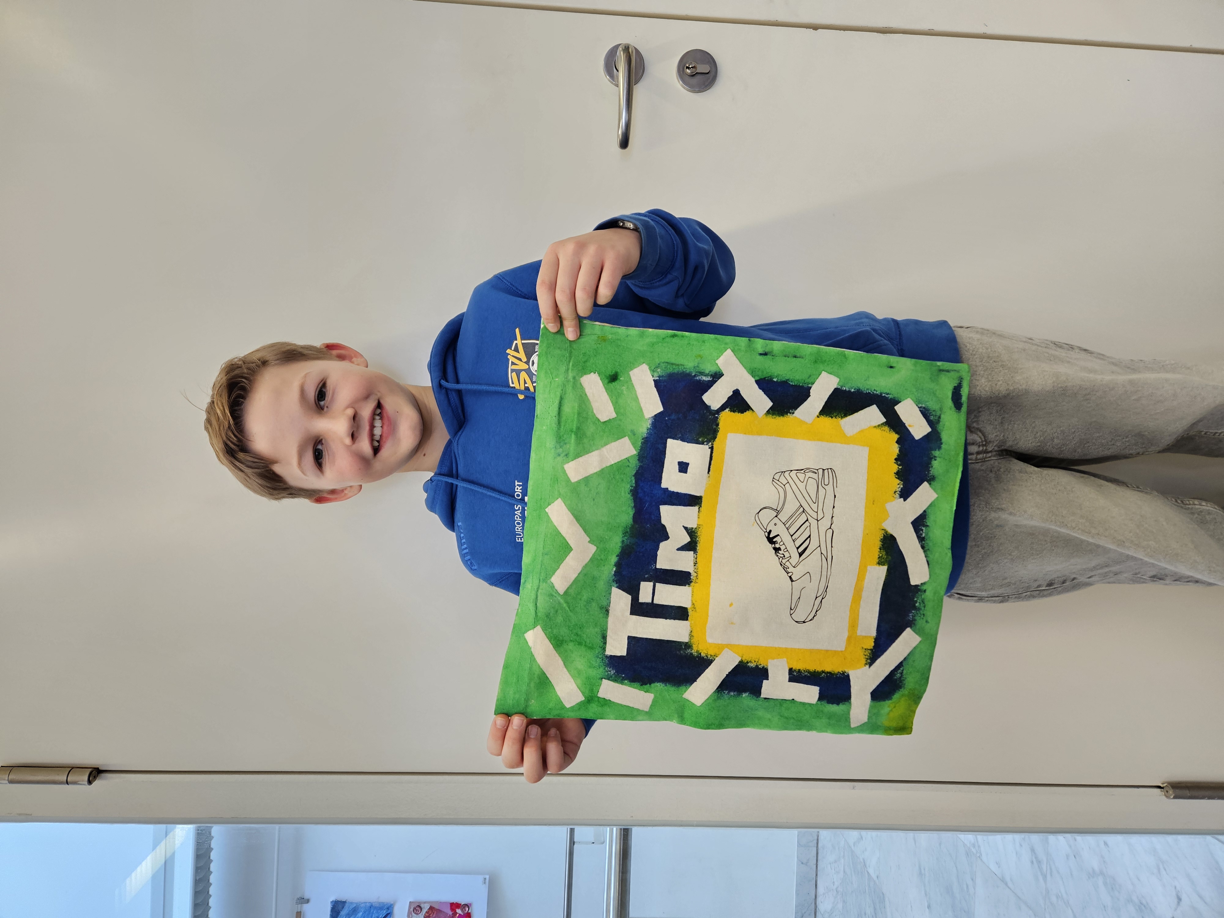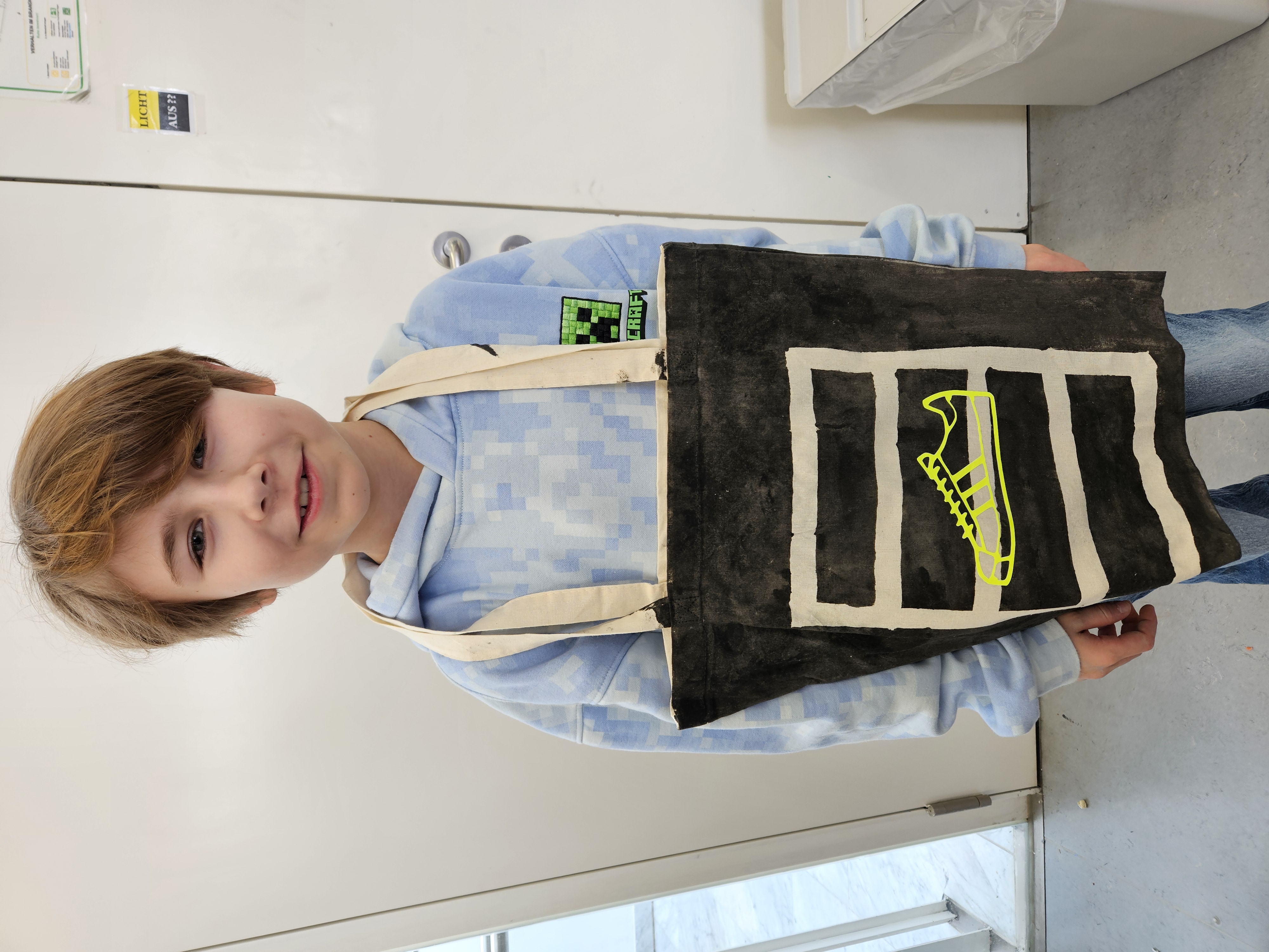 Die Tasche zu gestalten war nicht so schwer, bis auf das Bügeln. Ich habe gelernt, wie man bügelt. Das Gießen hat sehr viel Spaß gemacht, aber einmal ist leider etwas gebrochen. Adam, 1a