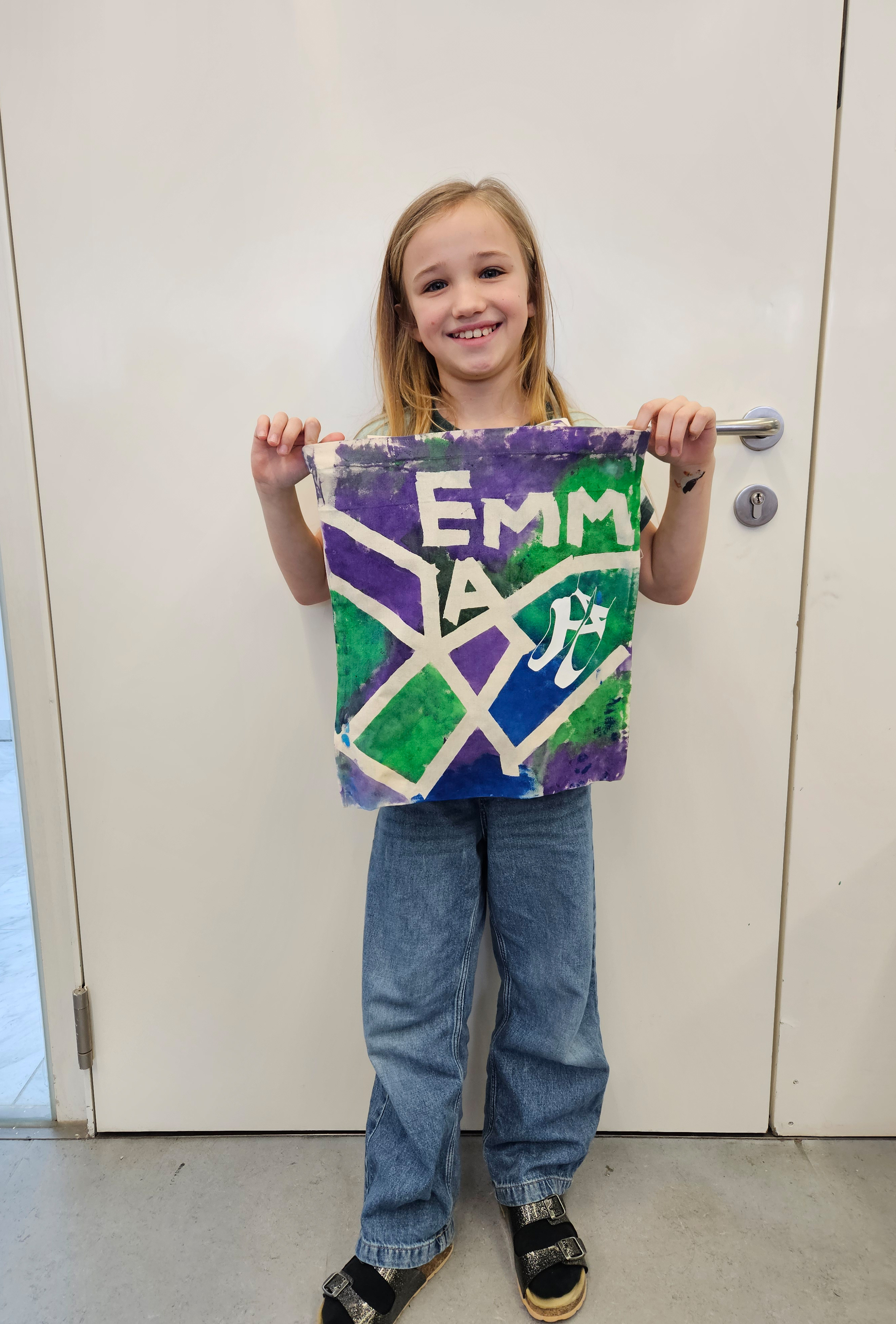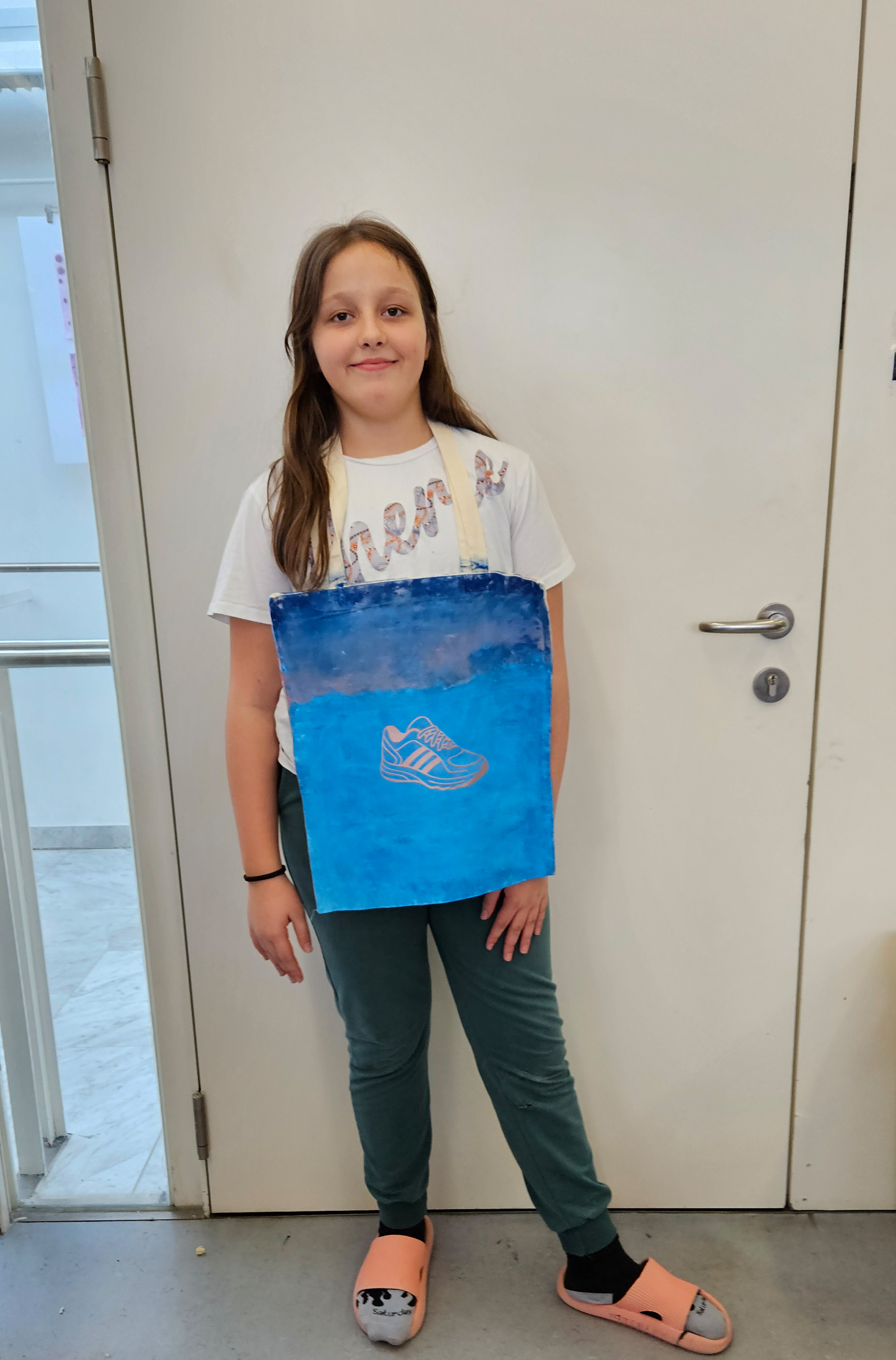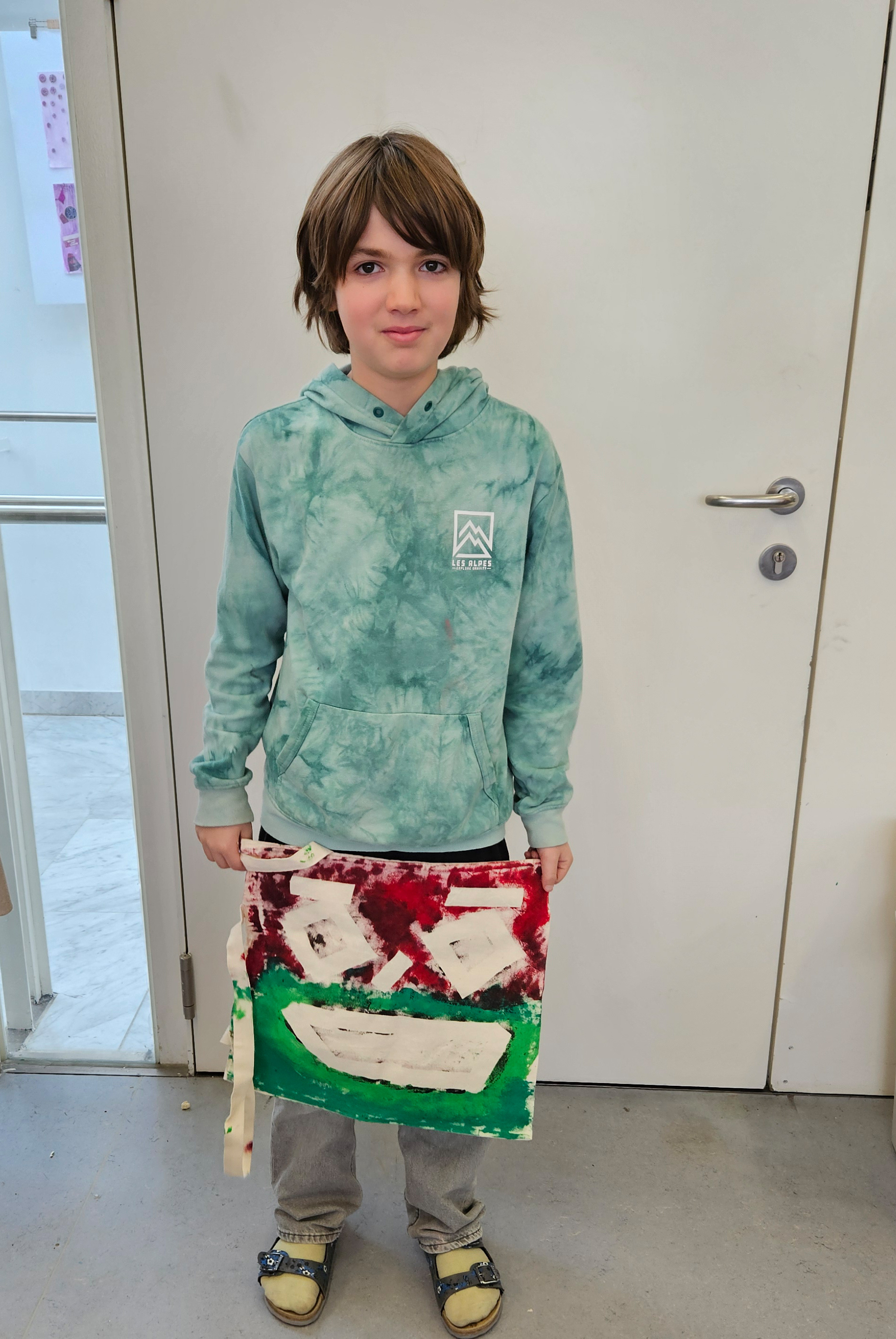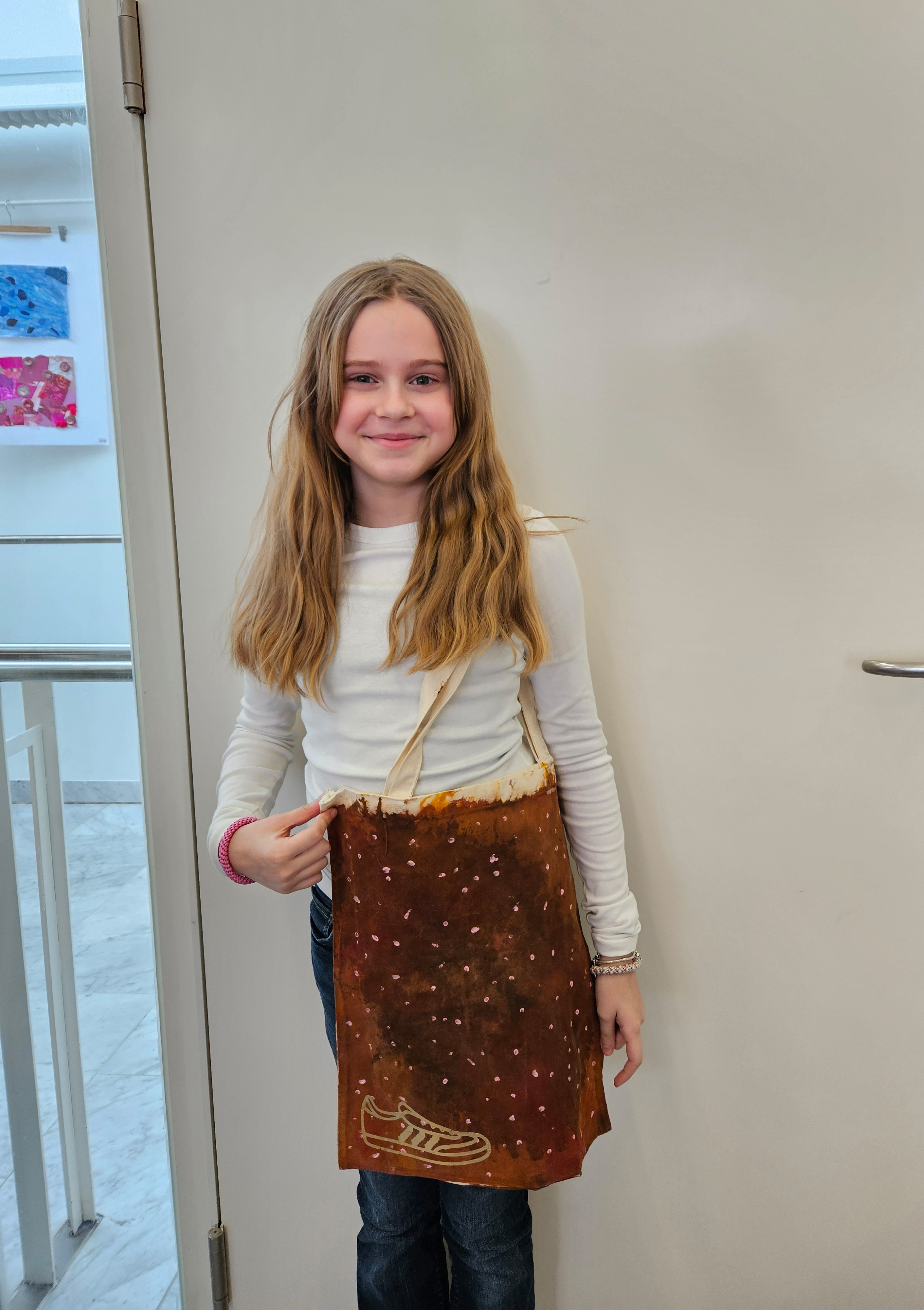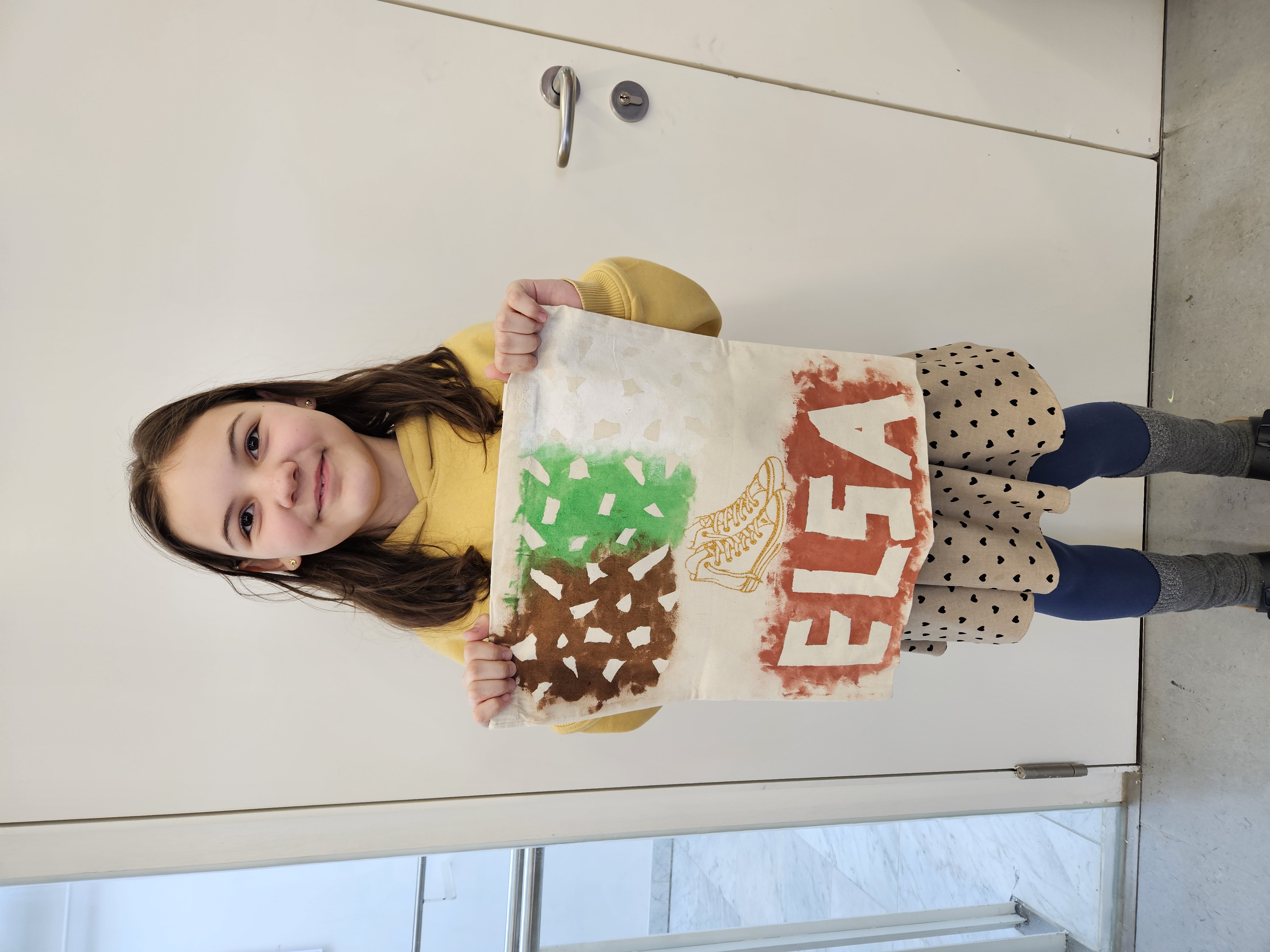 Die Tasche zu gestalten war nicht so schwer, bis auf das Bügeln. Ich habe gelernt, wie man bügelt. Das Gießen hat sehr viel Spaß gemacht, aber einmal ist leider etwas gebrochen. Adam, 1a