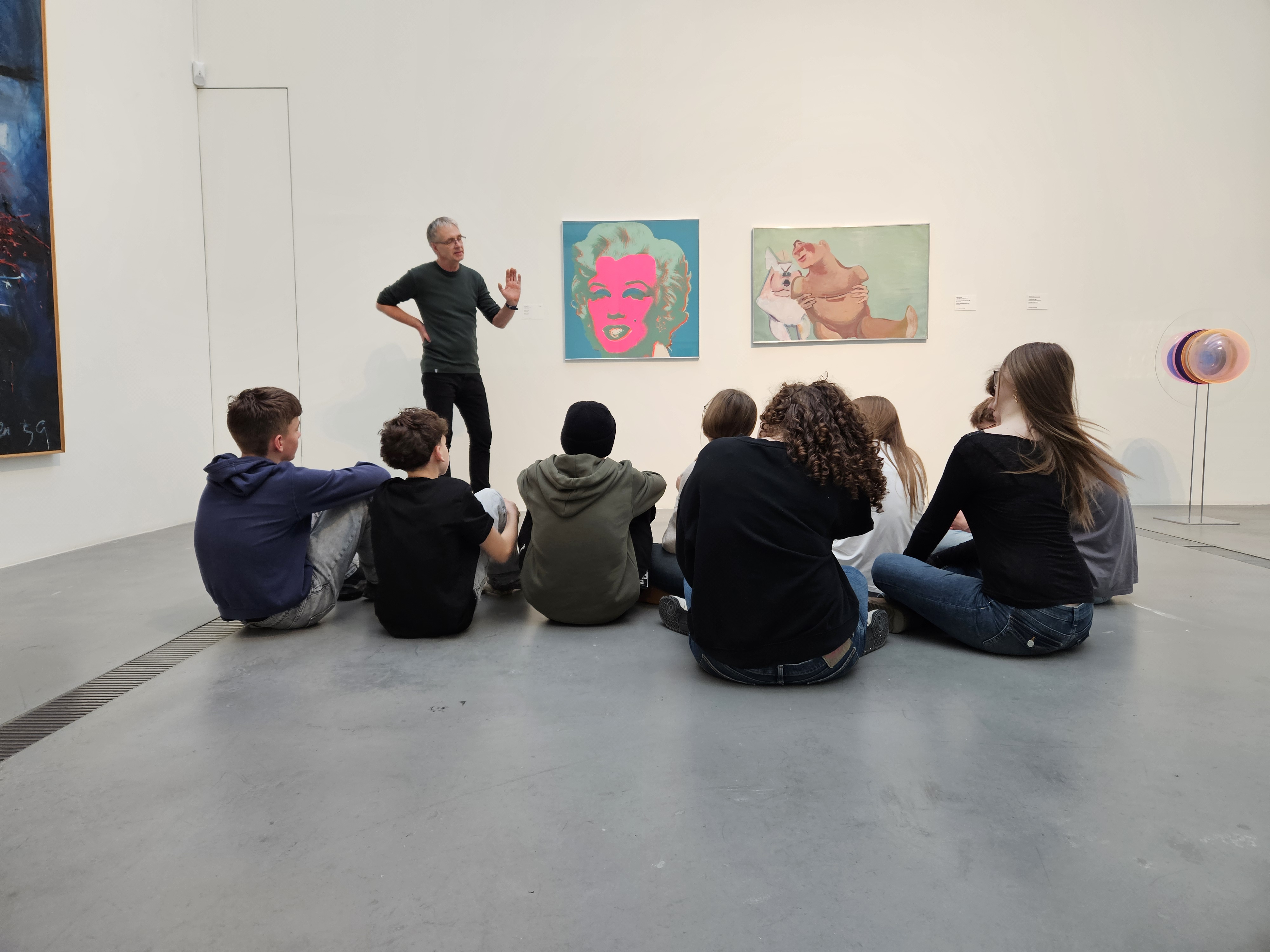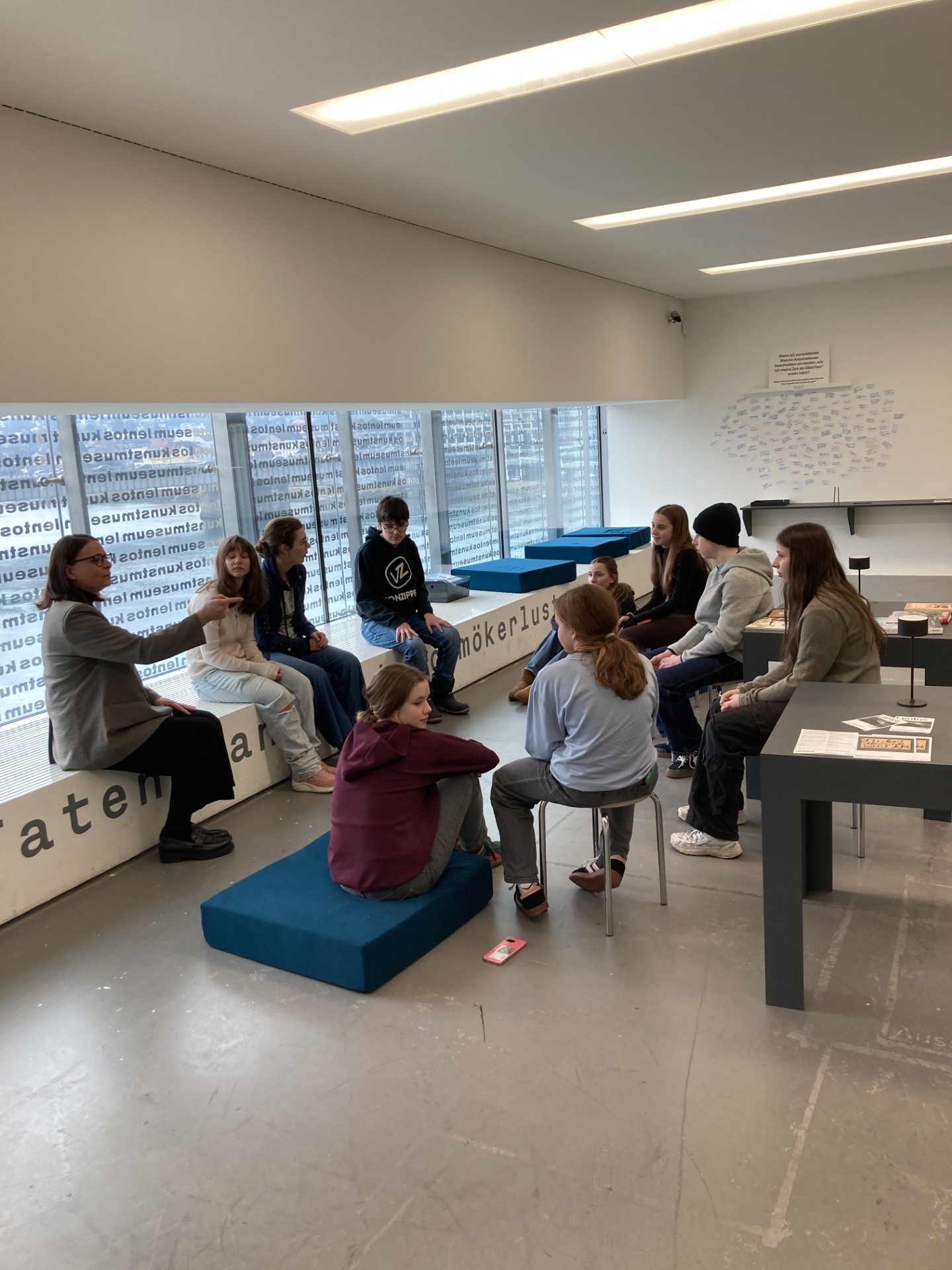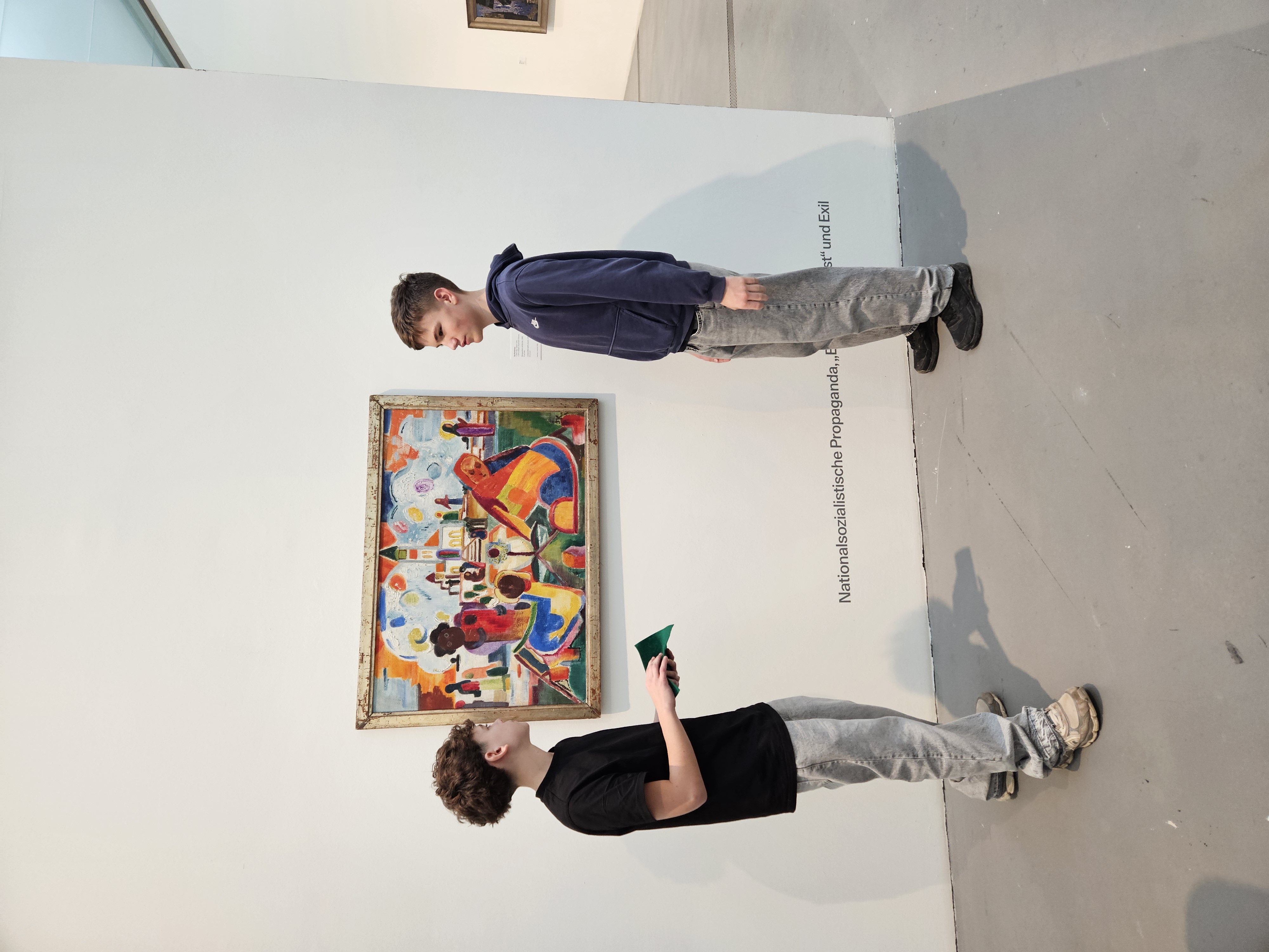 Der andere Teil der Klasse wanderte durch das Museum und erfuhr spannende Details über die Architektur und das Haus an sich. Wusstest du zum Beispiel, dass es einen „doppelten“ Keller gibt, um die Kunstwerke im unterirdischen Lager vor Hochwasser zu schützen? Anschließend gab es eine kleine Aufgabenstellung, in der man auch die Kunstwerke auf eine neue Art erleben konnte.