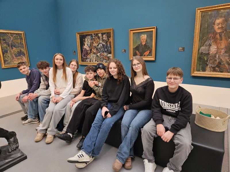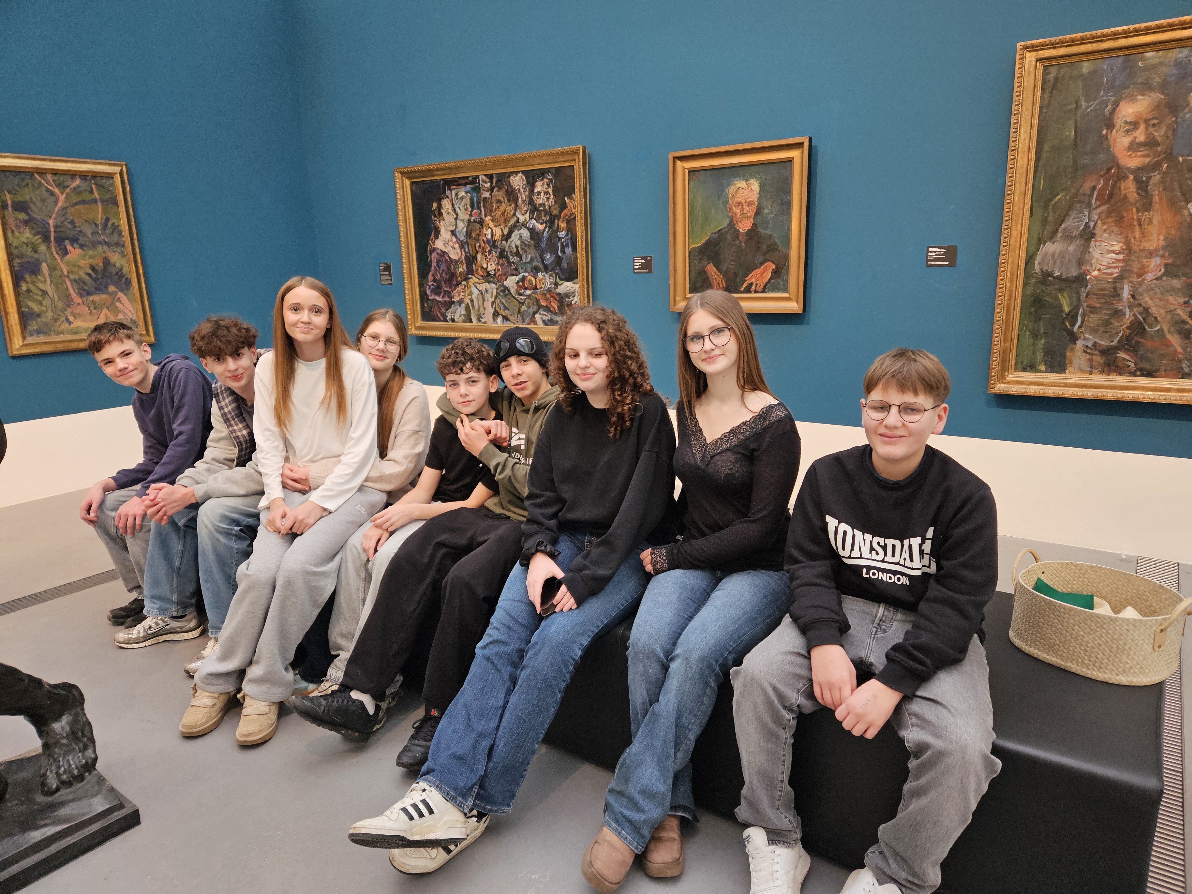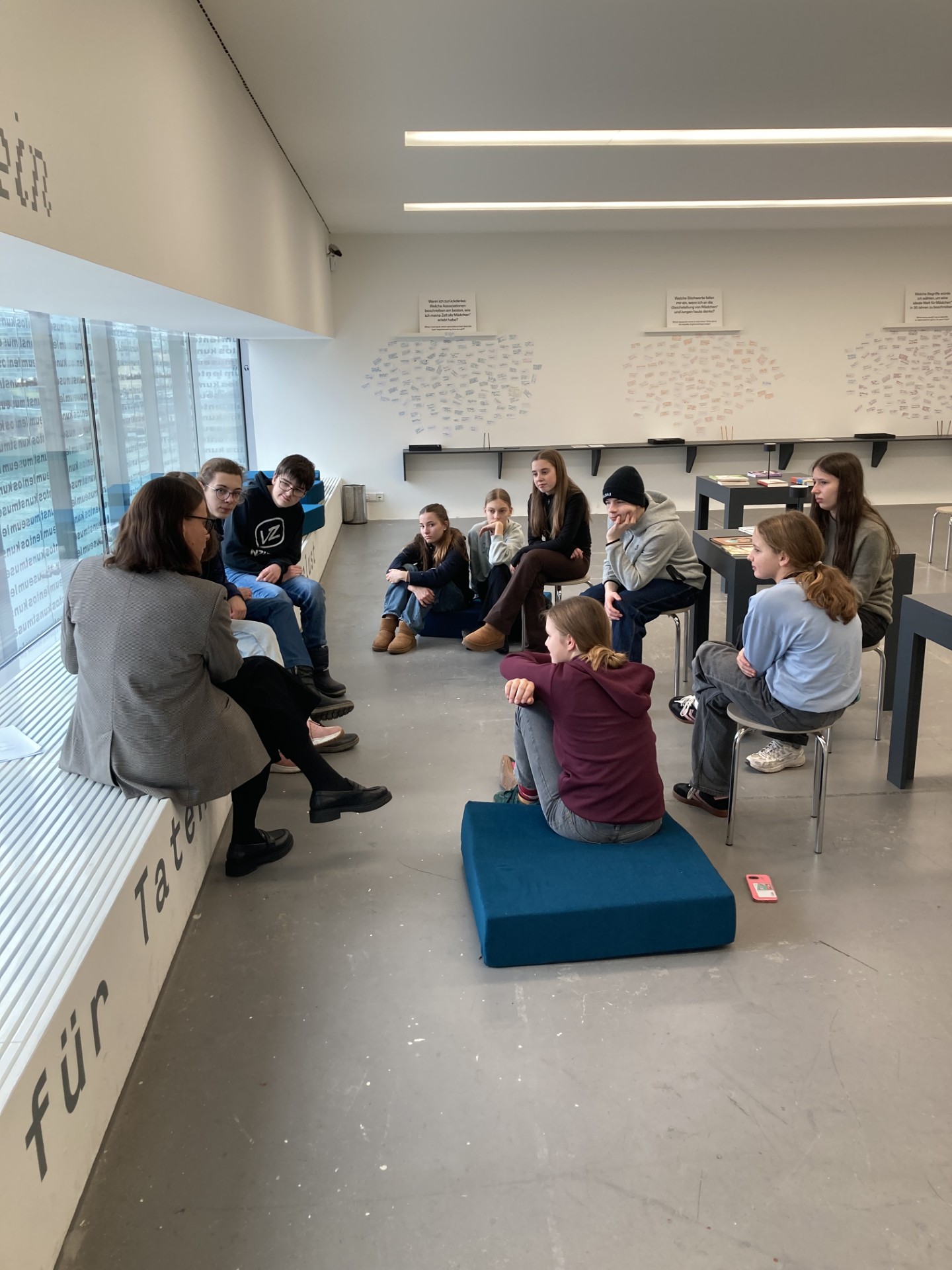 Der andere Teil der Klasse wanderte durch das Museum und erfuhr spannende Details über die Architektur und das Haus an sich. Wusstest du zum Beispiel, dass es einen „doppelten“ Keller gibt, um die Kunstwerke im unterirdischen Lager vor Hochwasser zu schützen? Anschließend gab es eine kleine Aufgabenstellung, in der man auch die Kunstwerke auf eine neue Art erleben konnte.