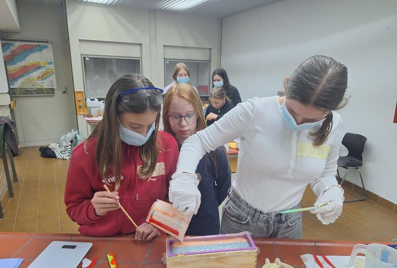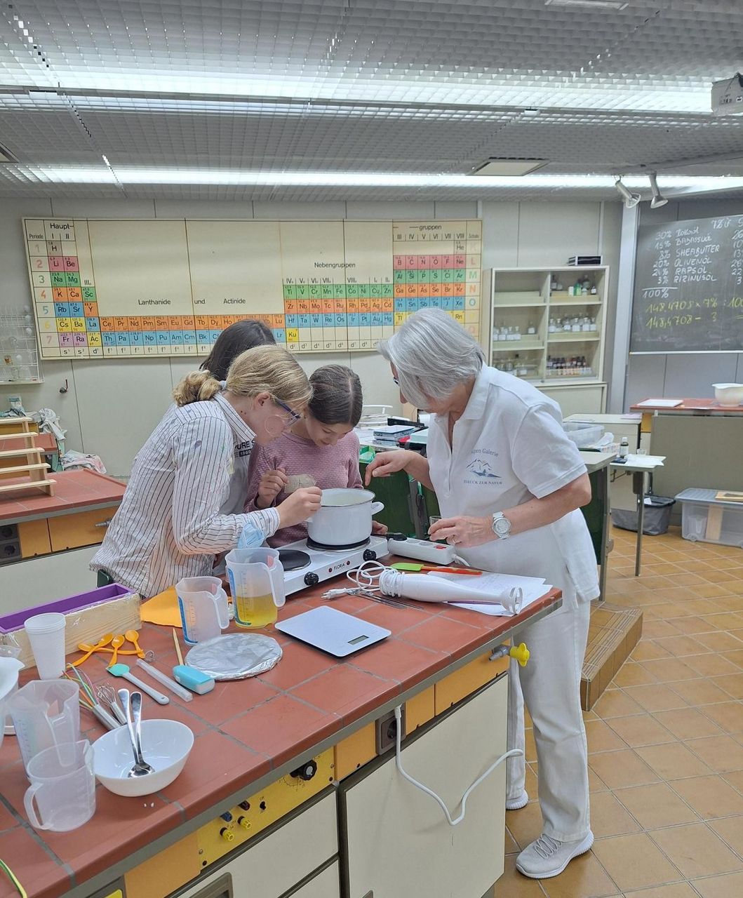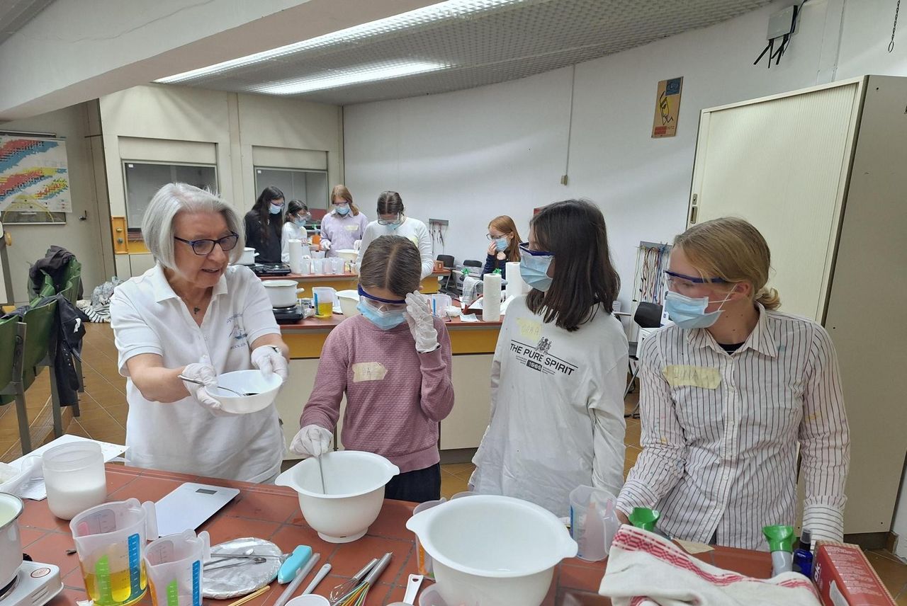 Im Rahmen des SIB-Moduls „Naturkosmetik und mehr“ nahmen zwölf Schülerinnen der beiden dritten Klassen an einem inspirierenden Seifenworkshop mit Frau Raczkowski teil, der Inhaberin einer Seifenmanufaktur in Urfahr. In vier intensiven Stunden entstanden unterschiedlichste Seifen – mit viel Genauigkeit, Zeitaufwand – und überraschend viel Prozentrechnung im Vorfeld, wie die Schülerinnen feststellten. Am zweiten Tag wurden die Seifen geschnitten: Erst jetzt offenbarte sich ihre wahre Gestalt – jedes Stück ein Unikat. Die Begeisterung war groß! Nach einer 40-tägigen Reifung dürfen die Schülerinnen je drei ihrer selbst hergestellten Seifen mit nach Hause nehmen – ein duftendes Andenken an ein lehrreiches Erlebnis.