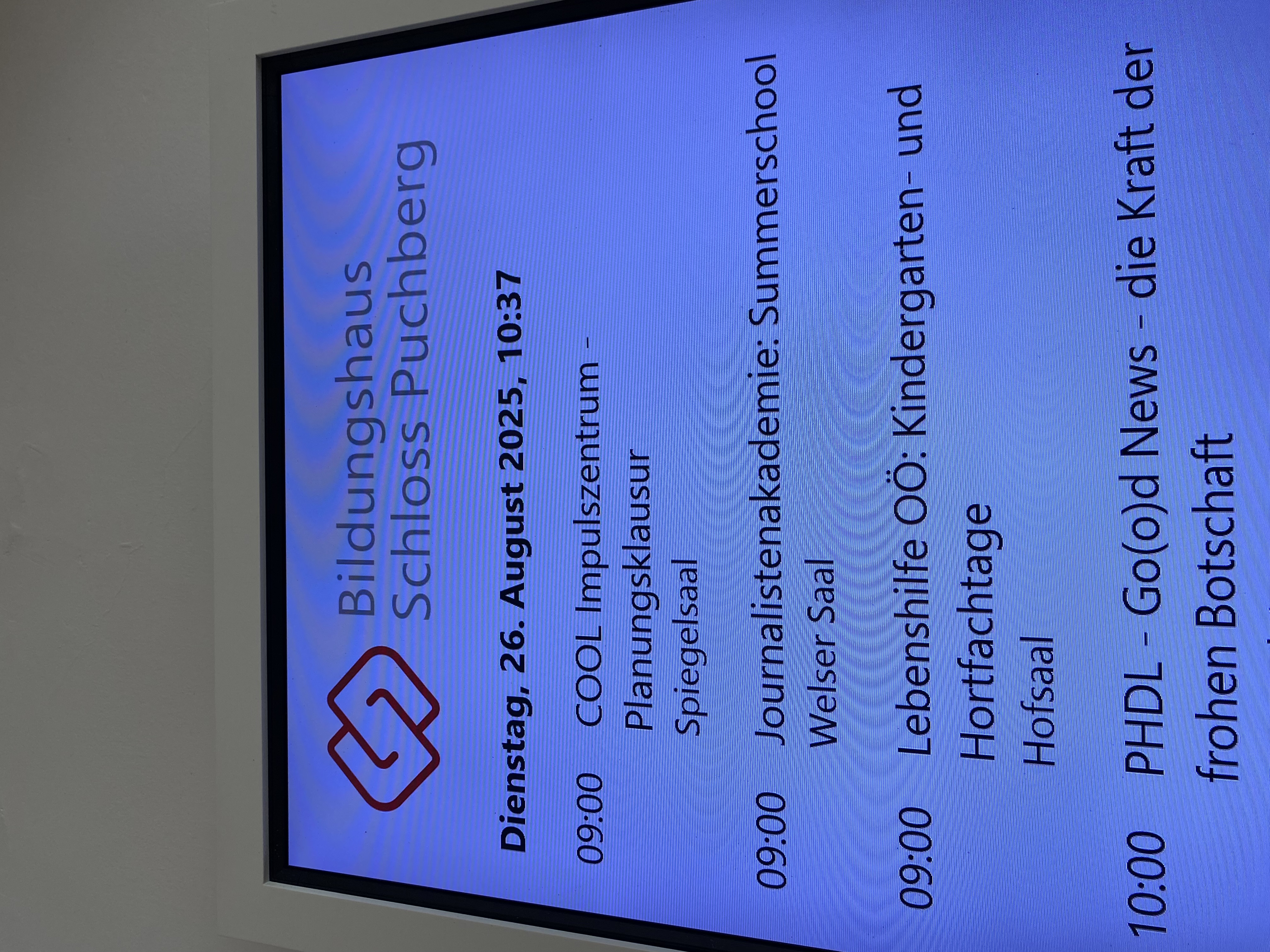 Bereits in der vorletzten Ferienwoche – vom 25. bis 27. August 2025 – startete das COOL-Multiplikatoren-Team der PMS – Karlheinz Heimberger, Martin Bauer und Martina Schimek – mit Direktorin Marianne Obermüller ins neue Schuljahr. Im Rahmen der diesjährigen Planungsklausur des COOL-Impulszentrums, die diesmal im Schloss Puchberg bei Wels stattfand, schmiedeten wir Pläne rund um die COOLe Schulentwicklung. Ein besonderes Highlight war der Vortrag von und Austausch mit dem Schweizer Pädagogen und Neurobiologen Christoph Bornhauser, der mit seinen Ausführungen über Schule, Lernen und KI für so manches Aha-Erlebnis sorgte.