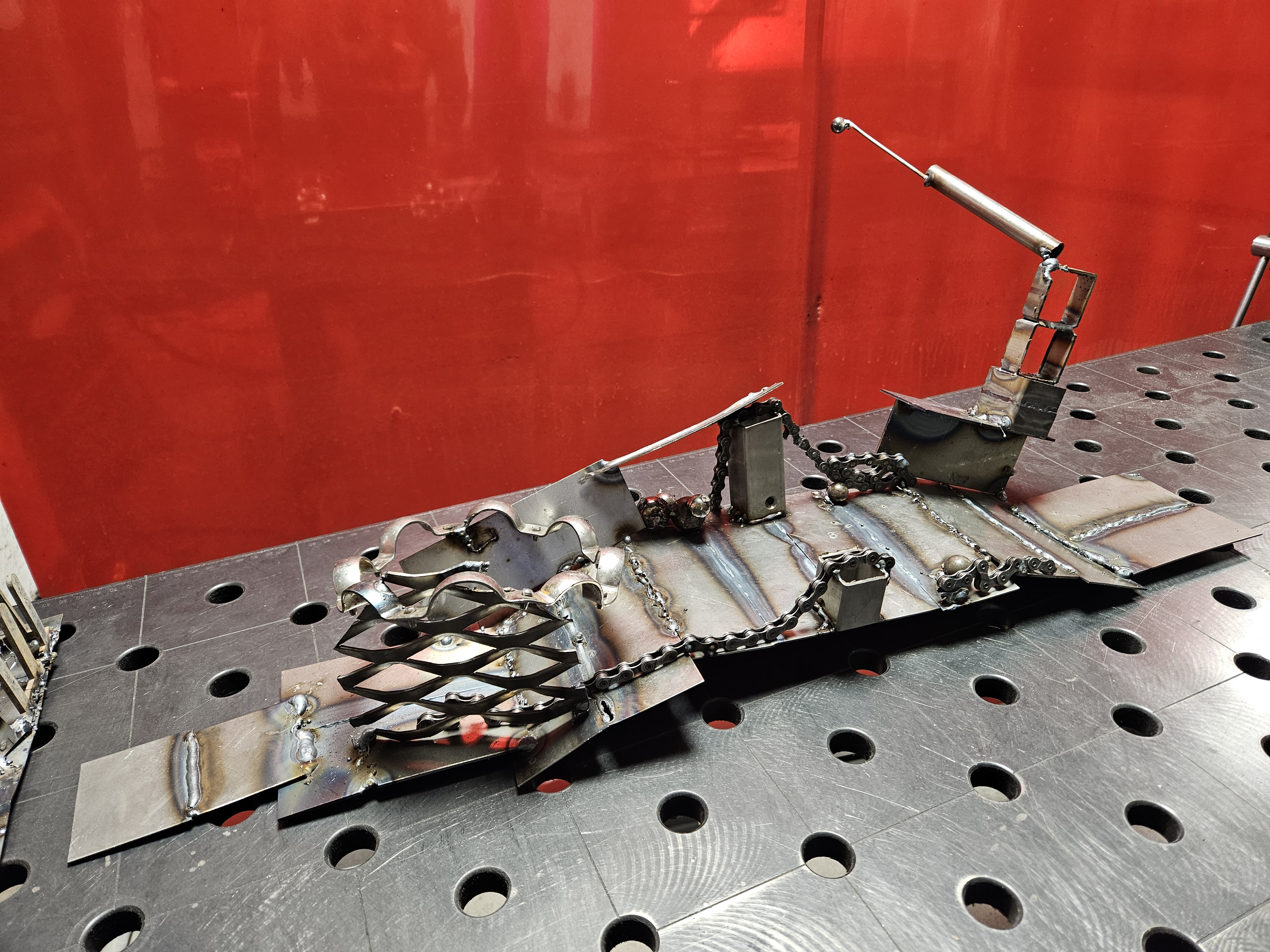 Im März und April besuchten die Schülerinnen und Schüler der 4B Schweißworkshops in der Grand Garage in der Tabakfabrik. Die 4B wurde für die Workshops in drei Gruppen aufgeteilt. Jede Gruppe war an einem anderen Nachmittag an der Reihe. Nach einer interessanten Einführung in die Welt der Metalle von Julian, dem Workshopleiter, der auch wichtige Hinweise zur Sicherheit gab, ging es schon los! Die Schülerinnen und Schüler durften aus Metallschrott Skulpturen schweißen, die in der einen oder anderen Weis etwas mit dem Nationalsozialismus zu tun haben. Die vorangegangene Exkursion in das Konzentrationslager Mauthausen, war in diesem Zusammenhang eine wichtige Auseinandersetzung mit der Thematik. Es ist geplant, die Skulpturen im Rahmen der Geh! Denk! Feier! In der weißen Galerie an der Pädagogischen Hochschule auszustellen.