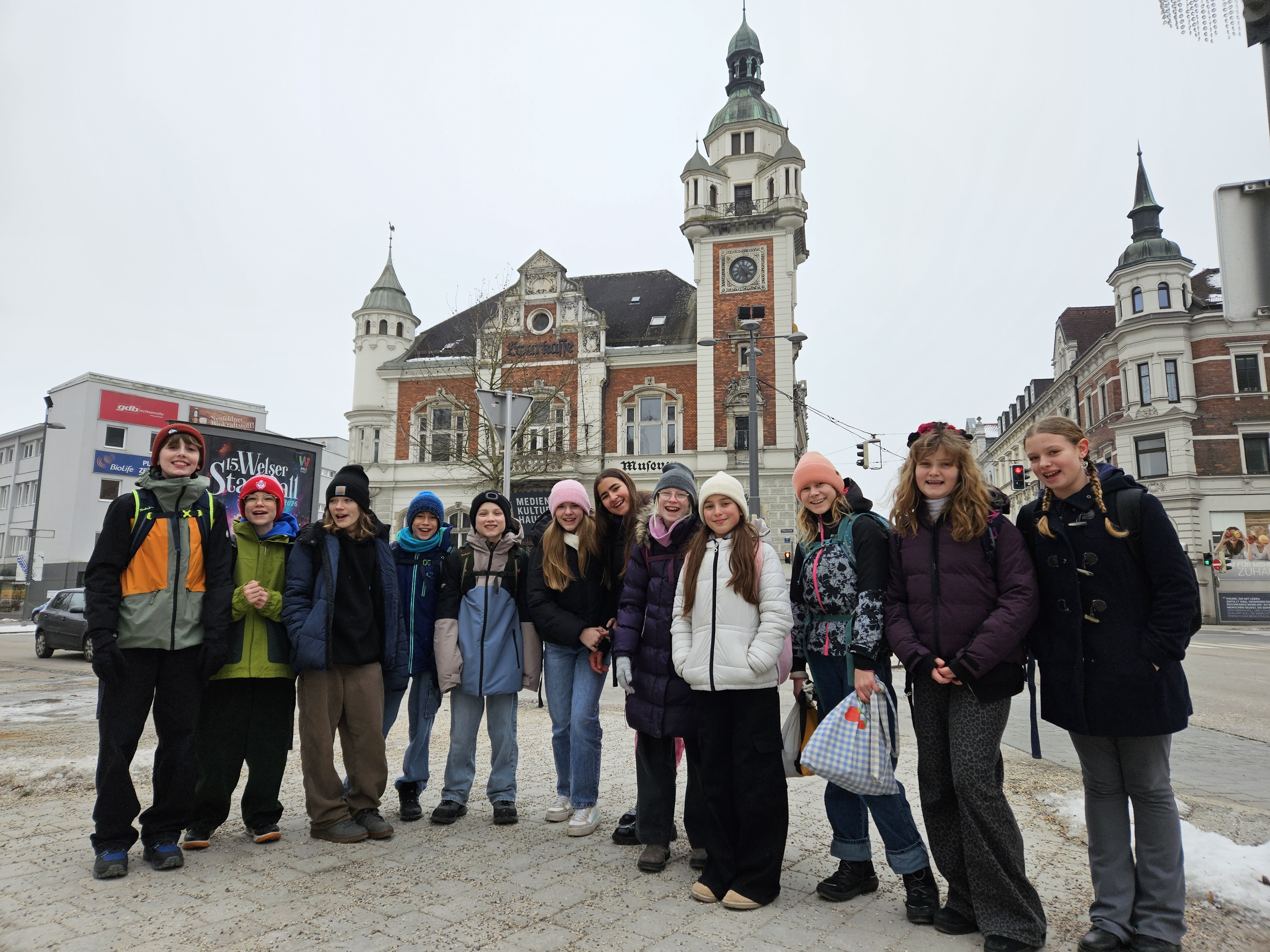 Im SIB-Modul „Trickfilme“ nutzen die Schüler:innen der 2a- und 2b-Klasse die schon bekannte Technik des Stop Motion Films und beschäftigten sich beim Ausflug ins Medienkulturhaus Wels – in die MKH Studios – mit Körperanimation.