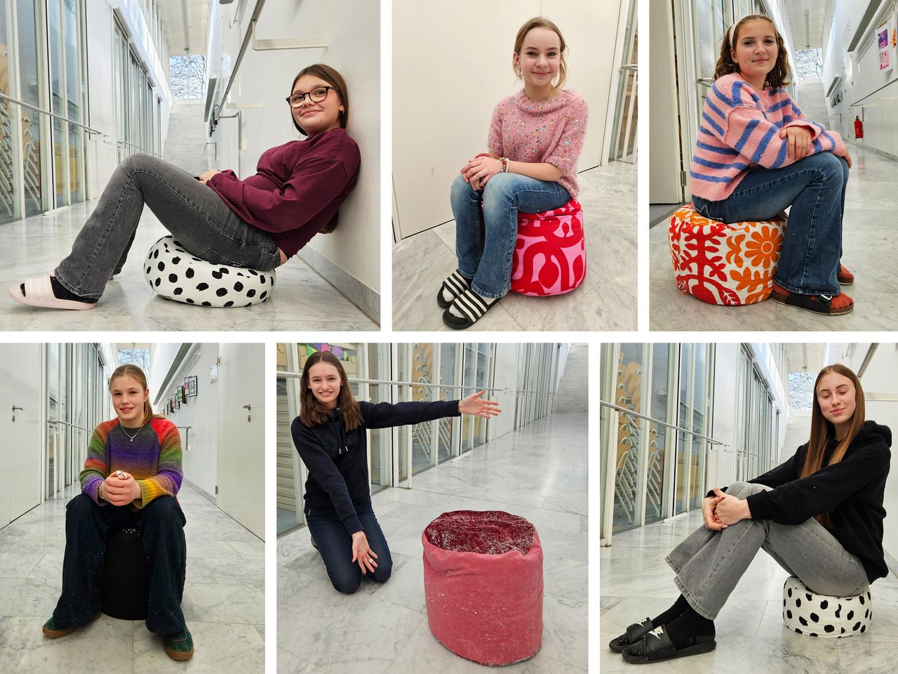 Am Ende des Wintersemesters entstanden im SIB Modul „Textile Sitzmöbel“ unterschiedlich große Sitzpolster, welche die Nähkenntnisse der Schülerinnen der beiden 4. Klassen auf die Probe stellten. In nur 4 Wochen wurde ein Schnitt gezeichnet, Stoff passend zugeschnitten, genäht und – der schwierigste Part – mit Styroporkügelchen gefüllt (ohne dabei den ganzen Rau zu verunstalten).