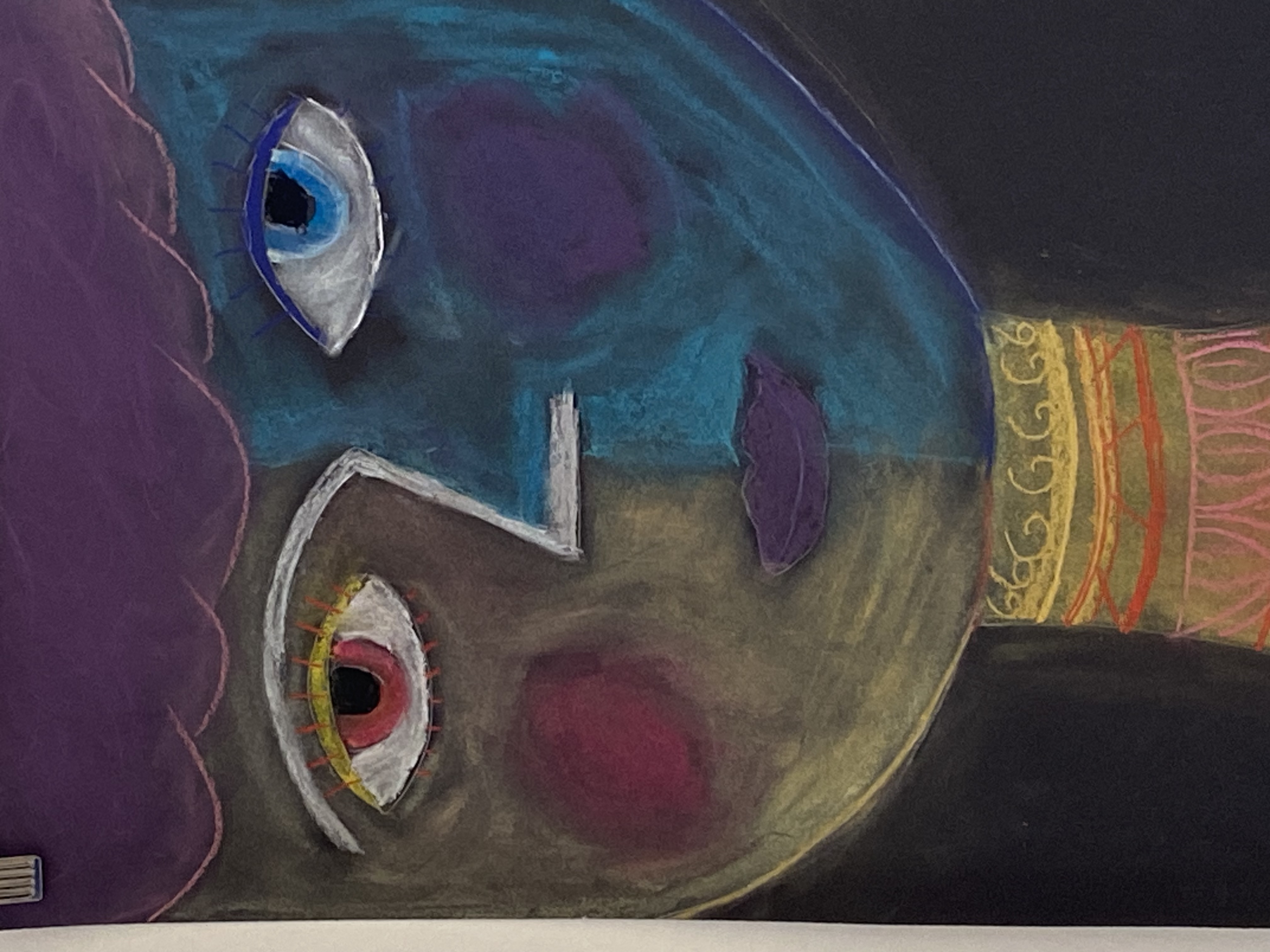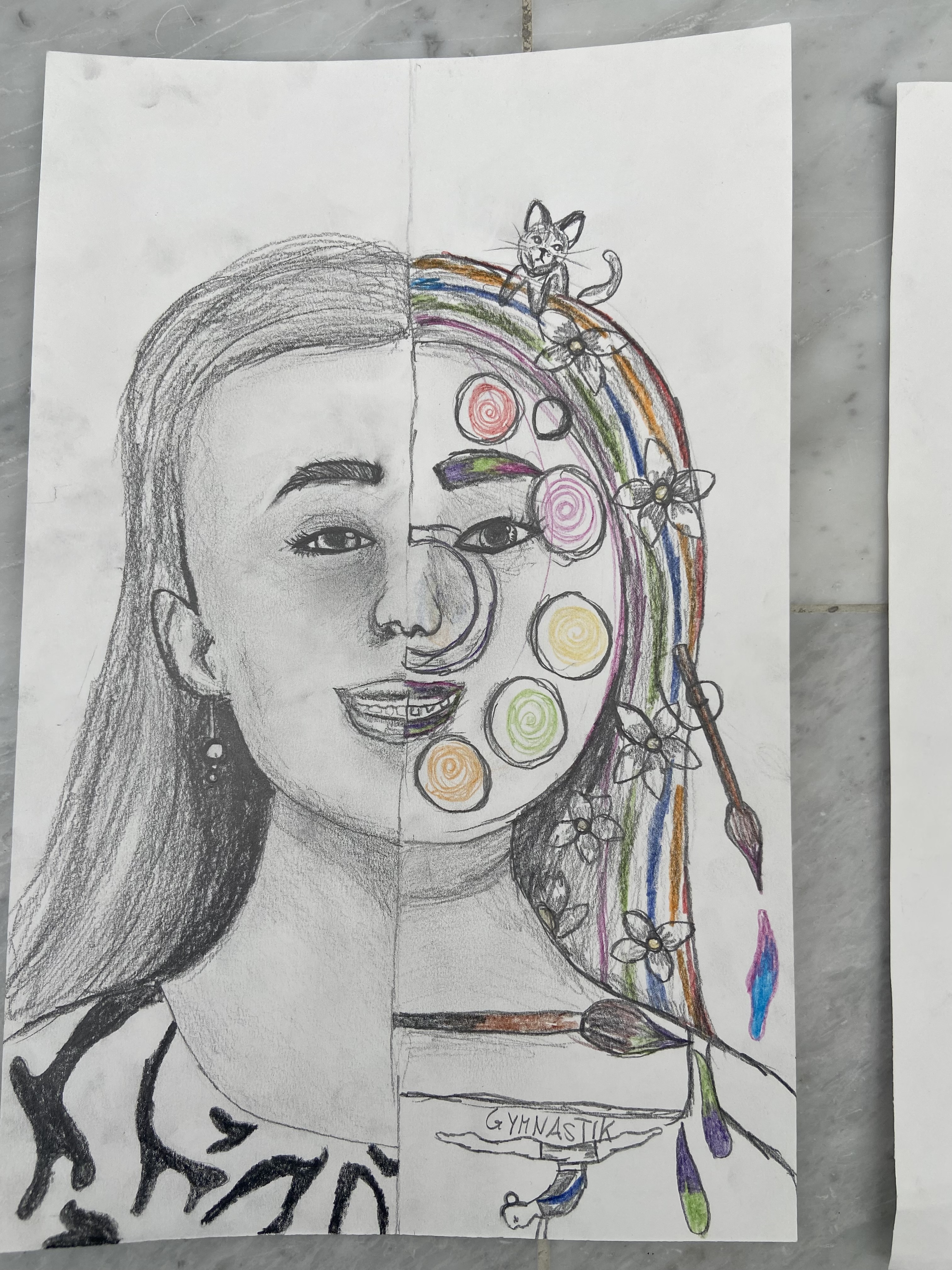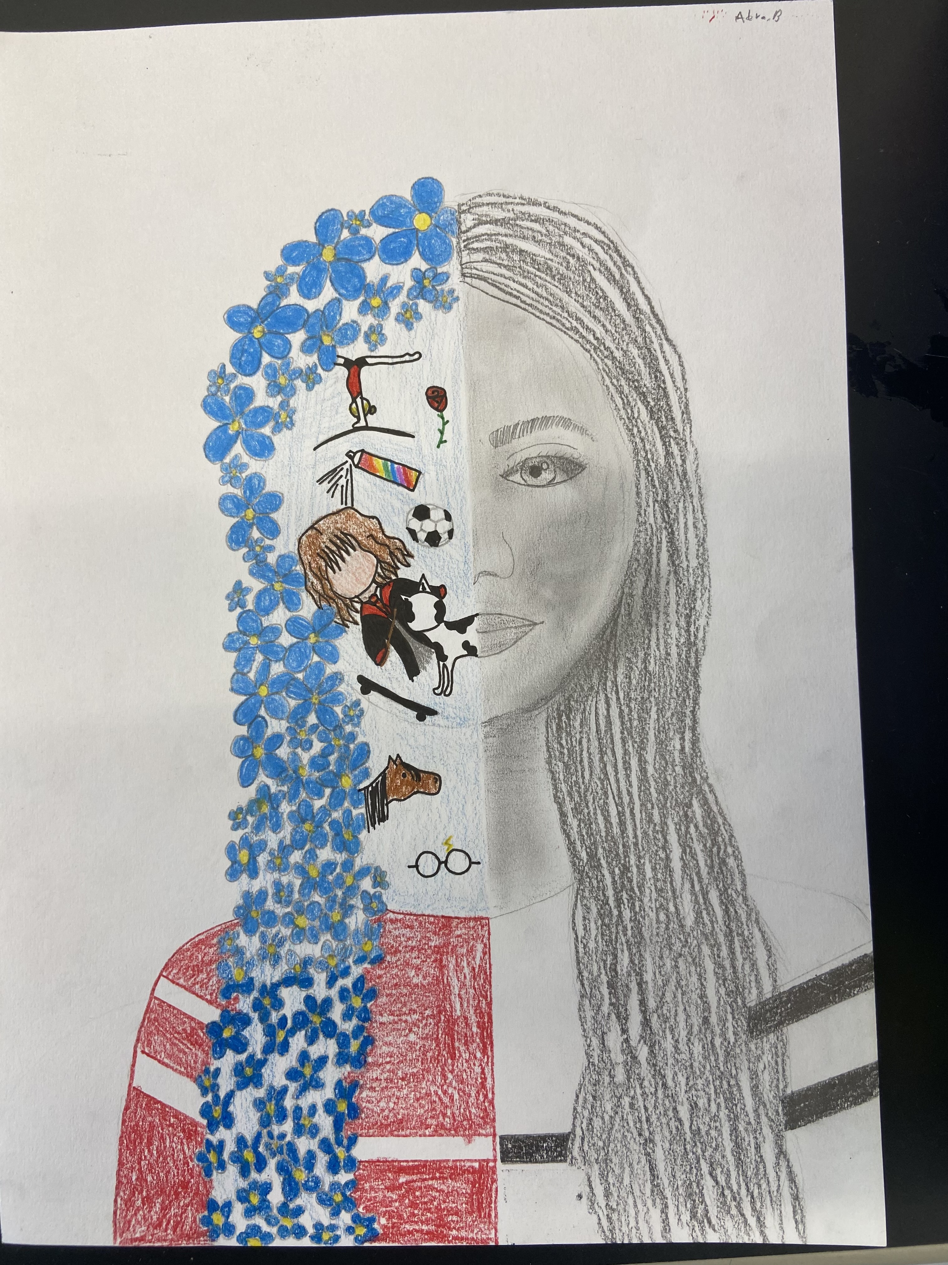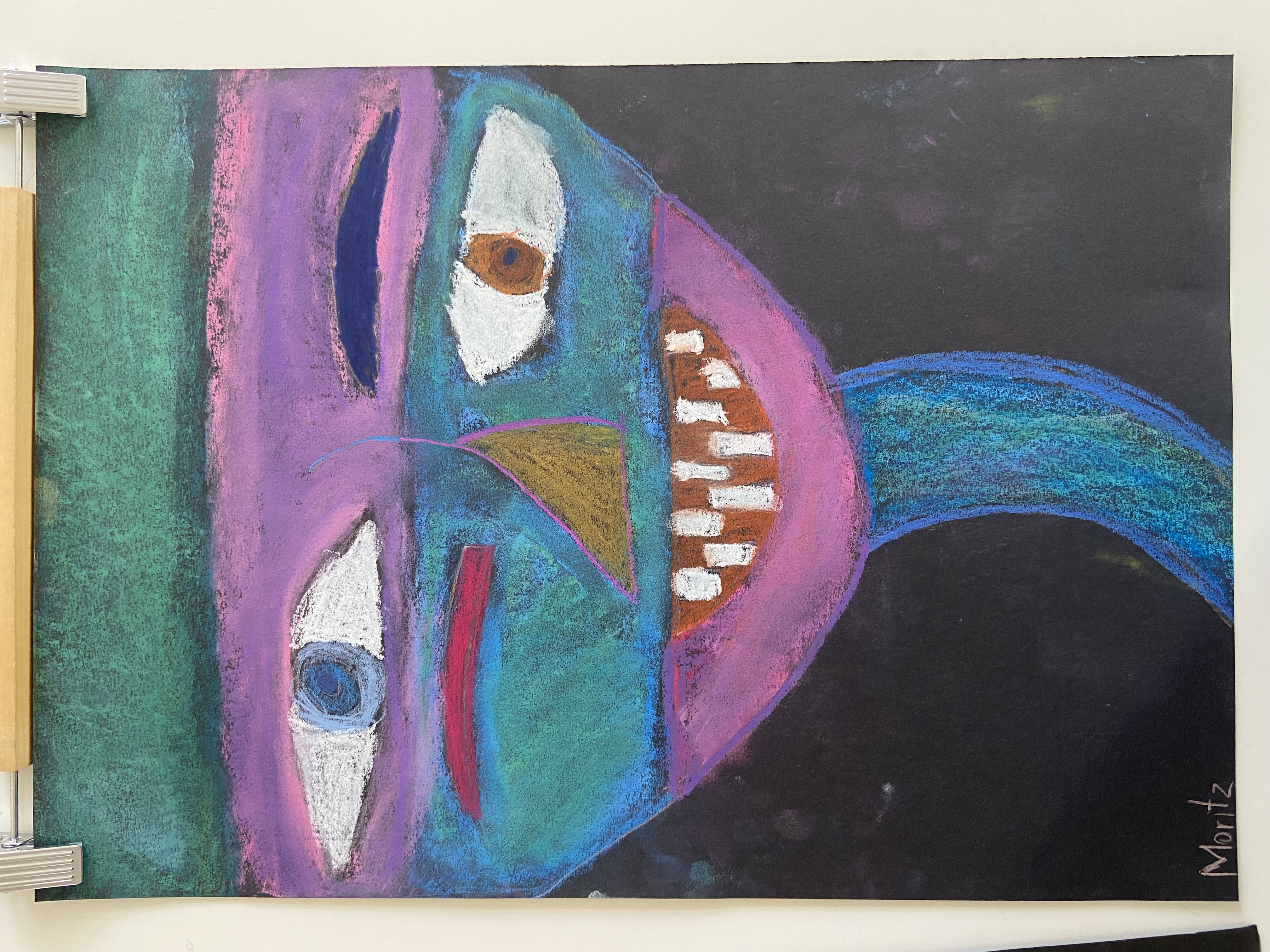 Inspiriert von Pablo Picasso, malten die Schülerinnen und Schüler der 3. Klassen abstrakte, farbenfrohe und ausdrucksstarke Porträts mit Pastellkreide. Wir beschäftigten uns auch mit der Kunstrichtung des Kubismus, die Picasso ins Leben gerufen hatte, und gestalteten dreidimensionale Gesichter aus Karton. Weil dabei die Frontal- und die Seitenansicht eines Gesichts in einem Bild vereint sind, wirkt es unwirklich und skurril. Schließlich wagten wir uns über das Selbstporträt, bei dem wir Schwarz-Weiß-Fotos mit Tuschestift schemenhaft auf Zeitungspapier übertrugen. Mit der Bleistiftzeichnung schlossen wir die Themenreihe „Porträt“ ab. Besonders beliebt war hier die Split-Face-Technik, bei der eine Gesichtshälfte möglichst realistisch das äußere Erscheinungsbild der Person zeigt, während die zweite darstellt, was im Kopf dieser Person vorgeht, was sie interessiert, bewegt und beschäftigt. Die großartigen Ergebnisse können sich wirklich sehen lassen!