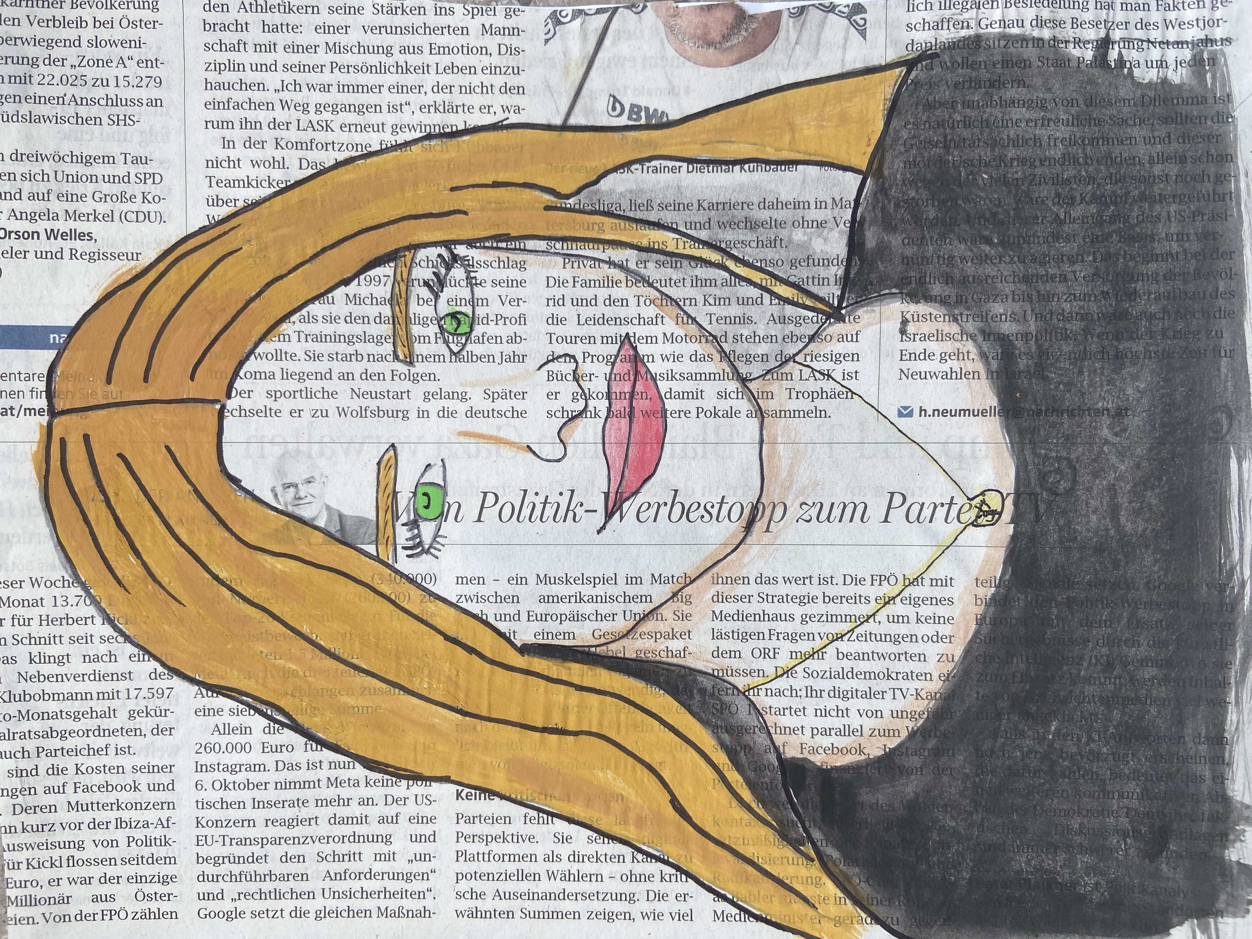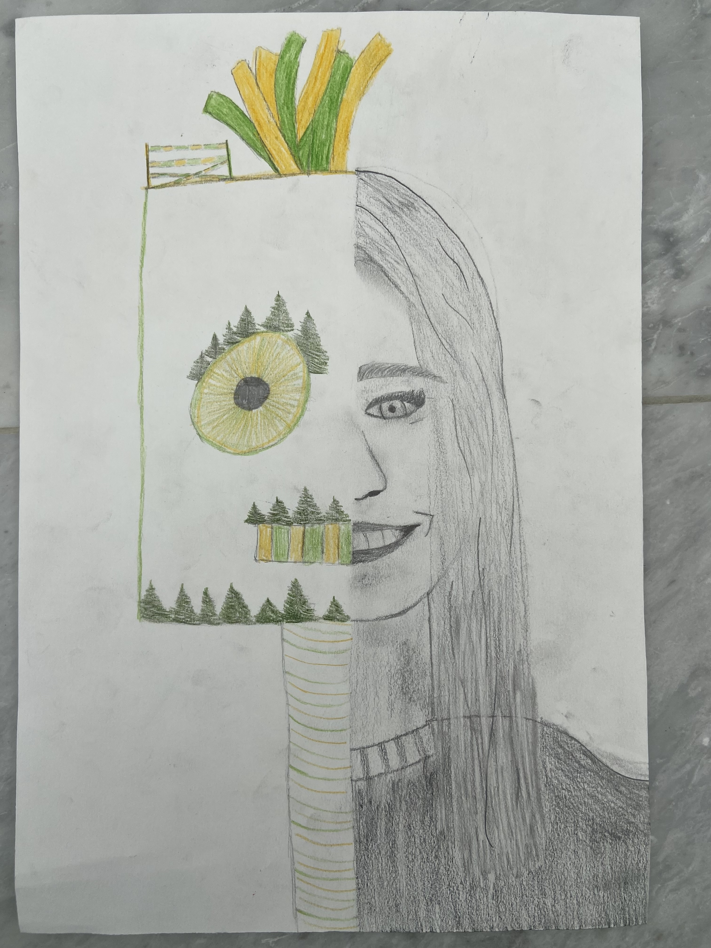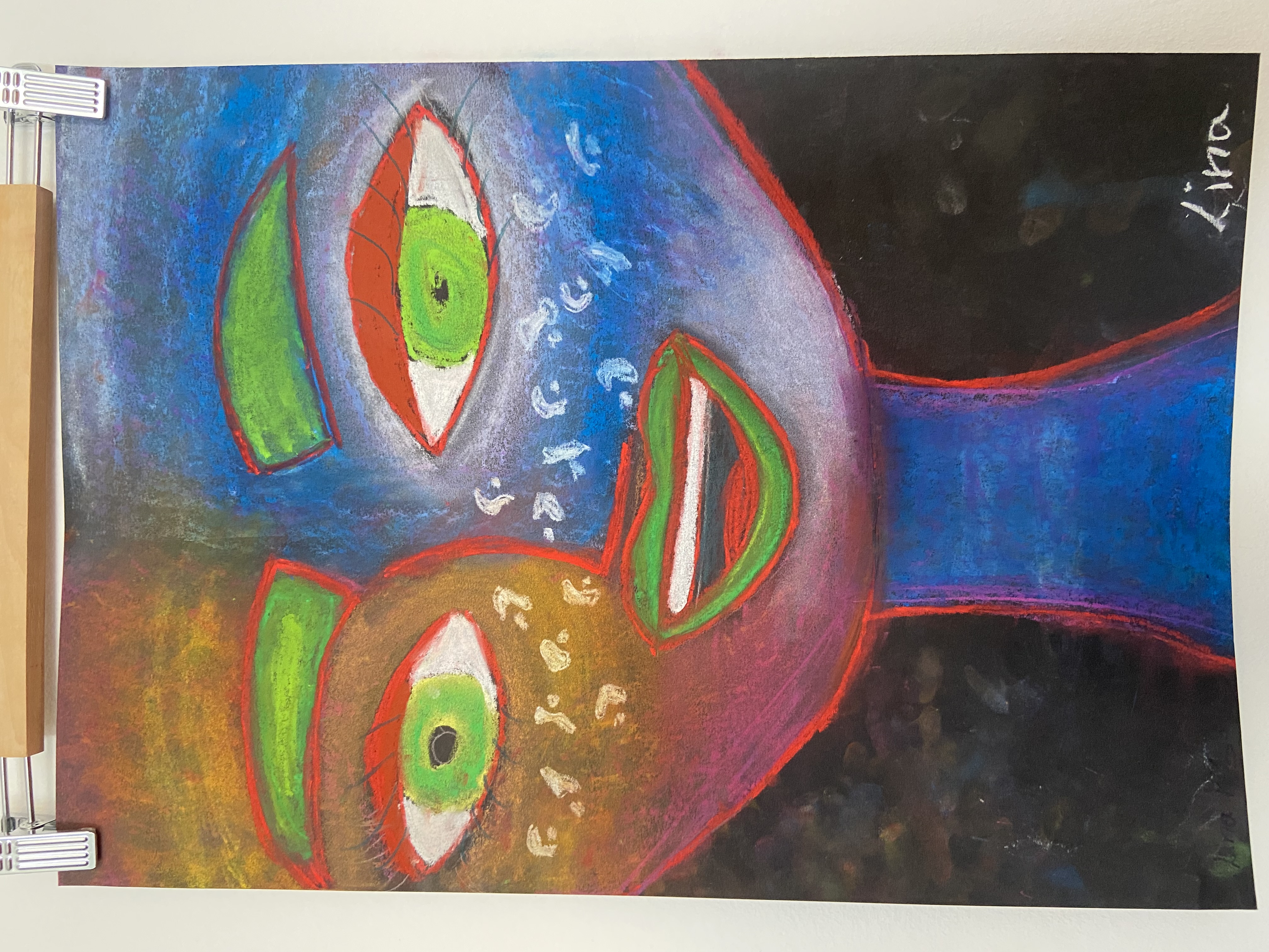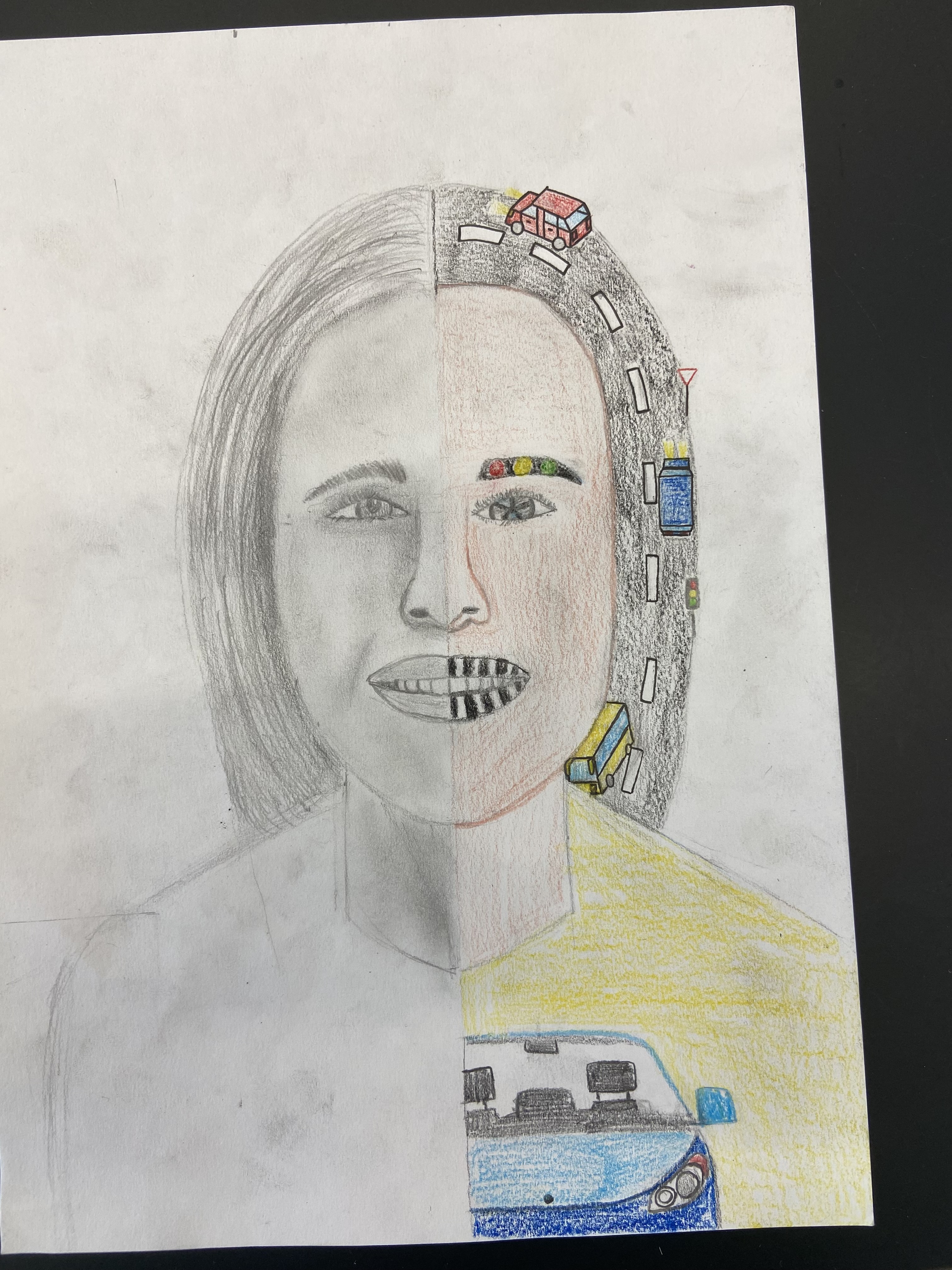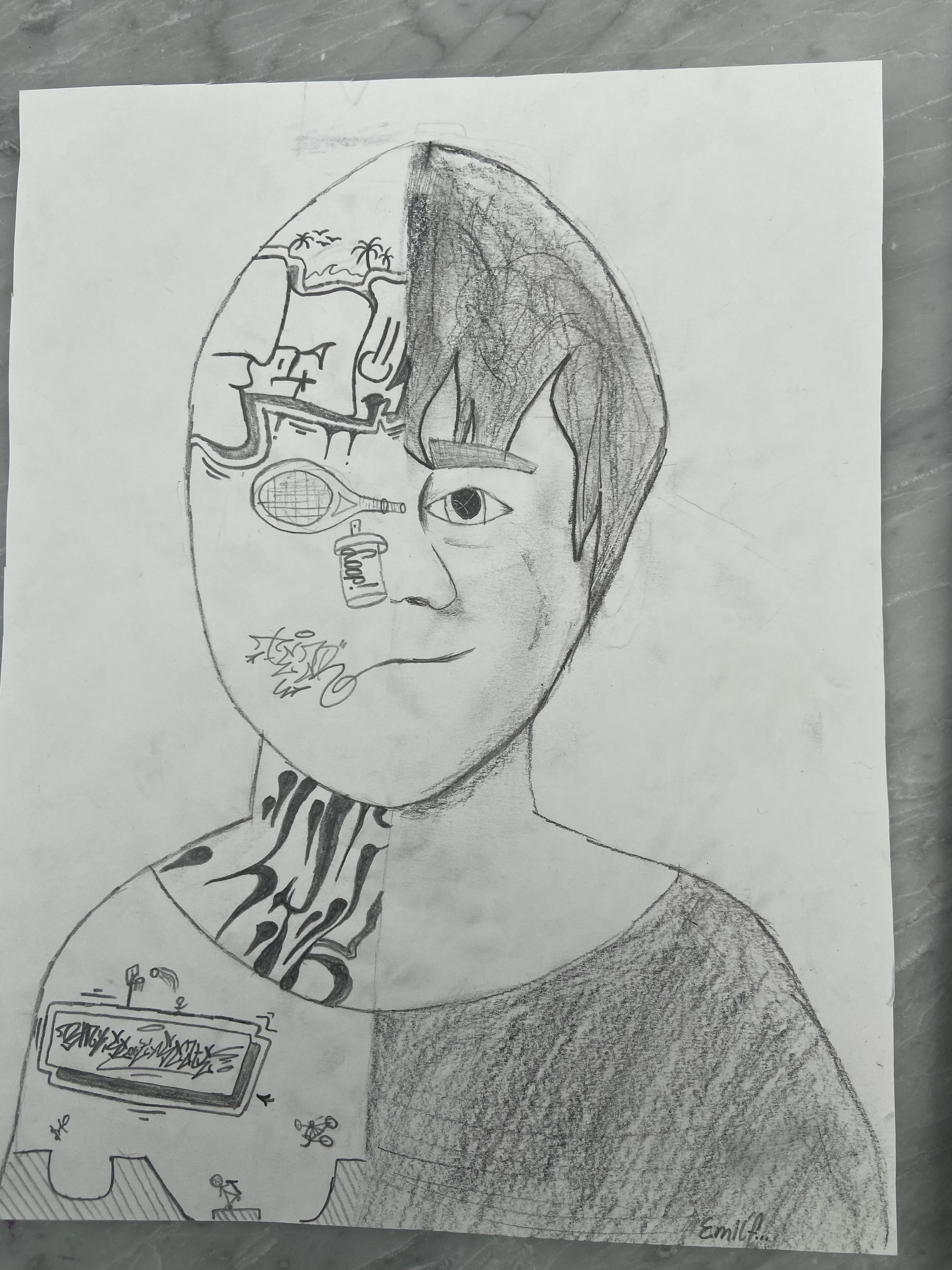 Inspiriert von Pablo Picasso, malten die Schülerinnen und Schüler der 3. Klassen abstrakte, farbenfrohe und ausdrucksstarke Porträts mit Pastellkreide. Wir beschäftigten uns auch mit der Kunstrichtung des Kubismus, die Picasso ins Leben gerufen hatte, und gestalteten dreidimensionale Gesichter aus Karton. Weil dabei die Frontal- und die Seitenansicht eines Gesichts in einem Bild vereint sind, wirkt es unwirklich und skurril. Schließlich wagten wir uns über das Selbstporträt, bei dem wir Schwarz-Weiß-Fotos mit Tuschestift schemenhaft auf Zeitungspapier übertrugen. Mit der Bleistiftzeichnung schlossen wir die Themenreihe „Porträt“ ab. Besonders beliebt war hier die Split-Face-Technik, bei der eine Gesichtshälfte möglichst realistisch das äußere Erscheinungsbild der Person zeigt, während die zweite darstellt, was im Kopf dieser Person vorgeht, was sie interessiert, bewegt und beschäftigt. Die großartigen Ergebnisse können sich wirklich sehen lassen!