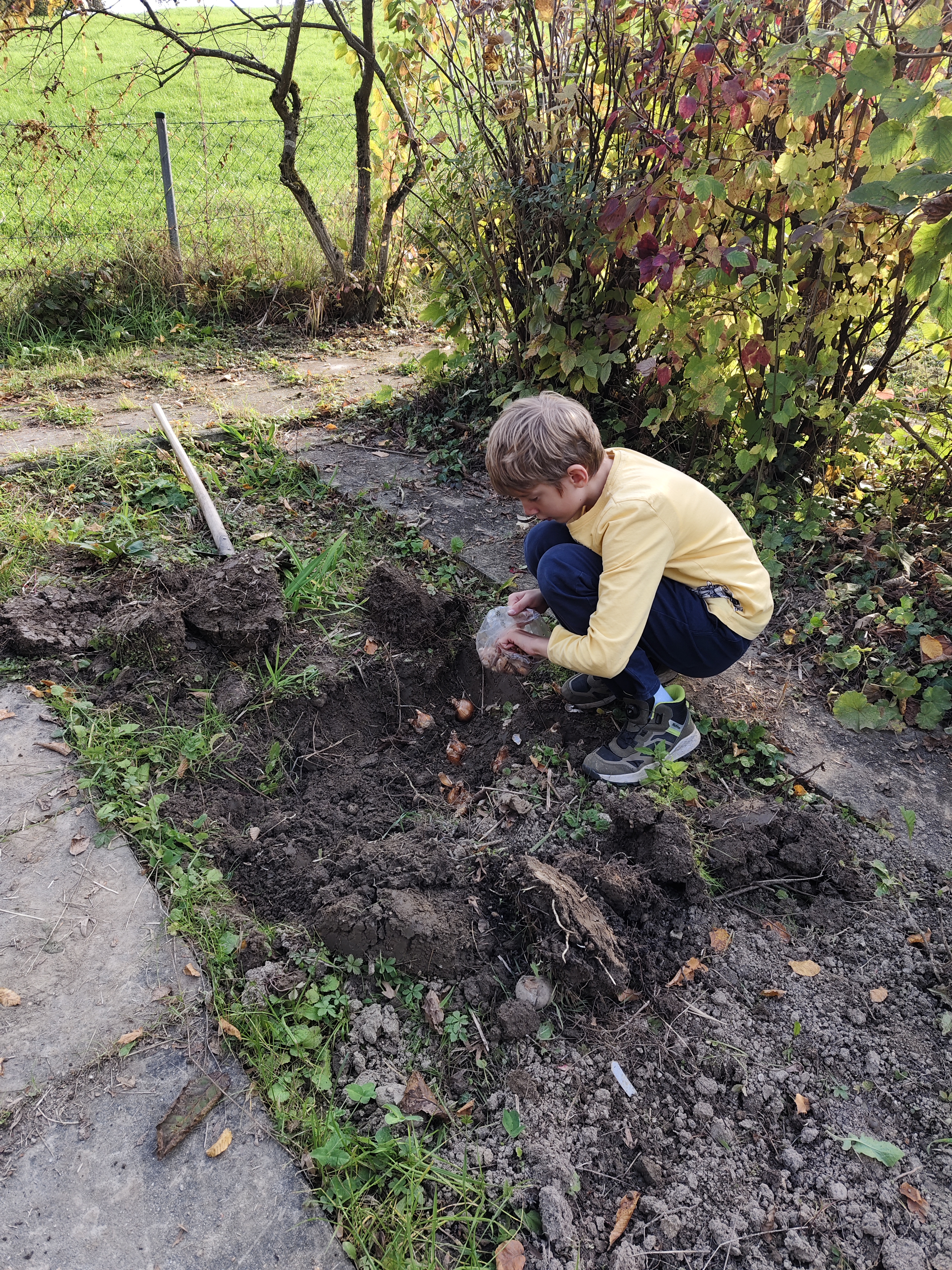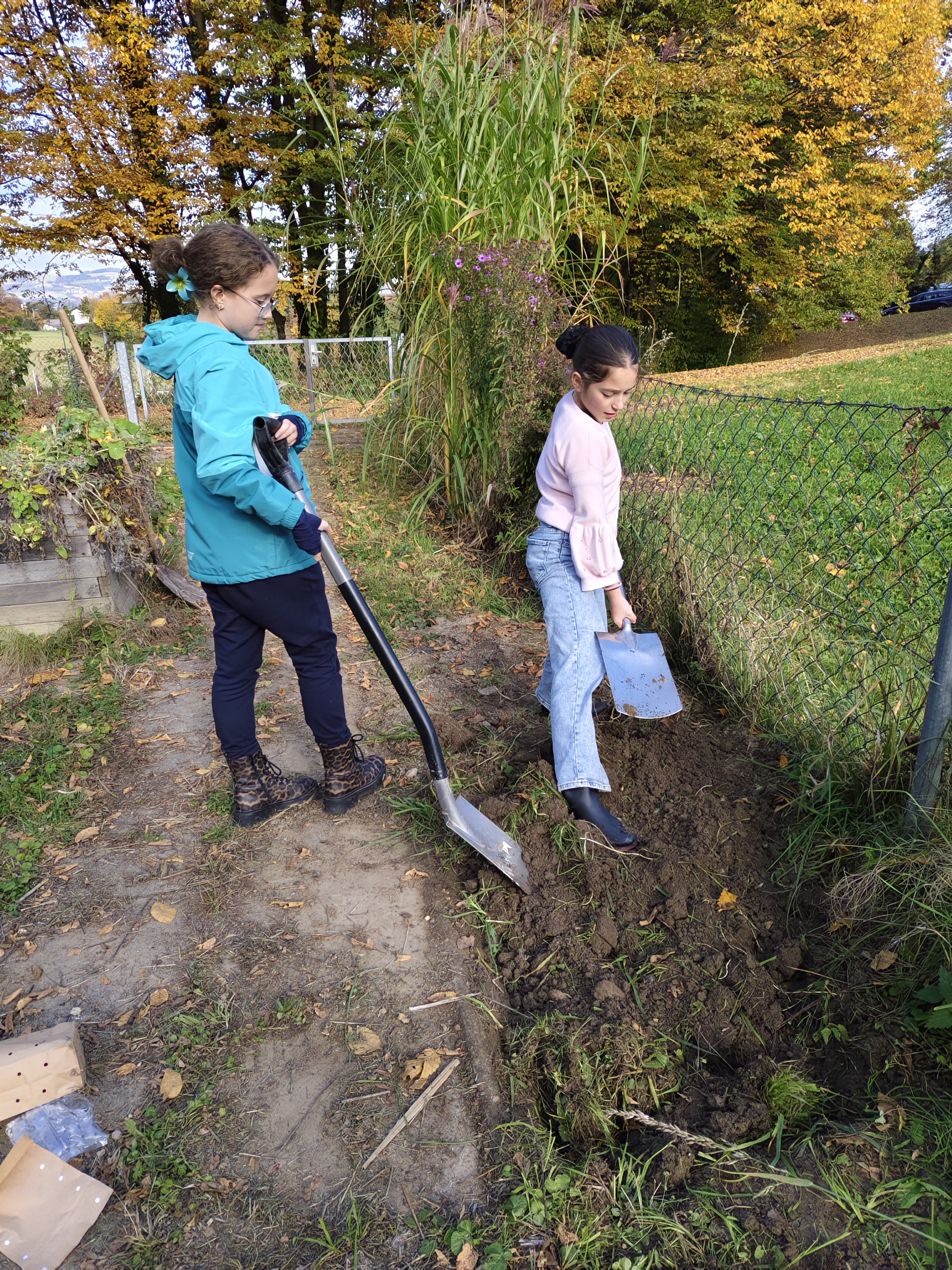 Im Laufe des Schulgartenjahres hat sich viel getan. Gemeinsam mit engagierten Schüler:innen aus der ersten und zweiten Klasse gestalten wir heuer unseren Schulgarten. Im Herbst wurde der Garten vor den Herbstferien aufgeräumt: Die Gartenhütte wurde vom Efeu befreit, ein neuer Weg angelegt und ein Blumenbeet bepflanzt. Außerdem verteilten wir kurz vor der Winterpause Blumenzwiebeln wie Tulpen und Krokusse für den Frühling in der Erde.