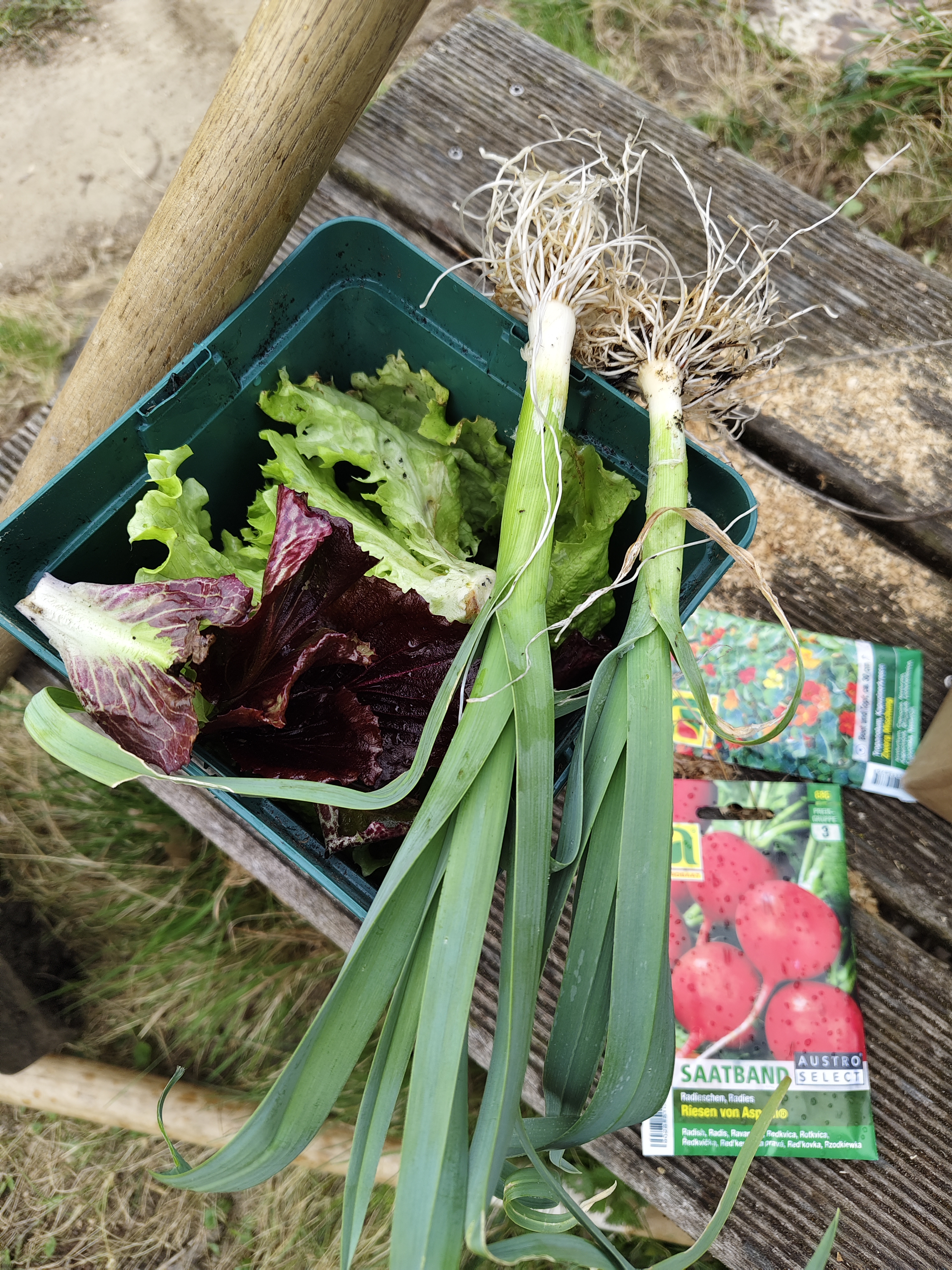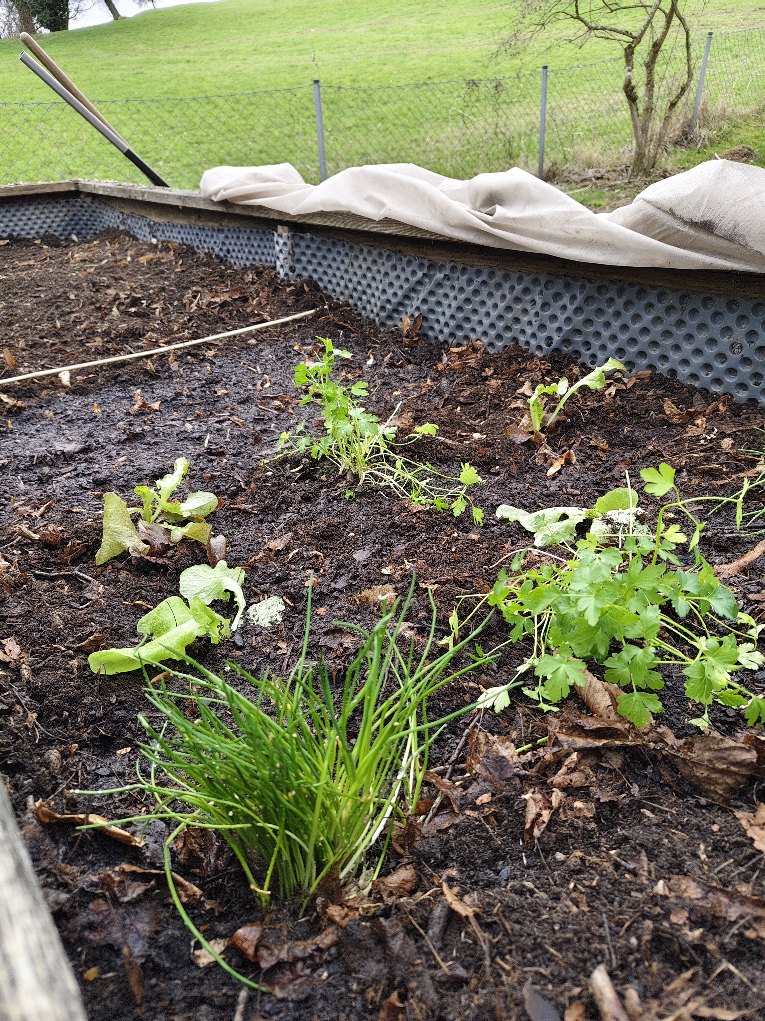 Seit Anfang März arbeiten wir wieder im Garten. Die ersten Frühblüher sind bereits aufgegangen und locken Insekten an. Den Lehmboden verbesserten wir mit Erde und Sand. Im Hochbeet säten wir Karotten und Radieschen, steckten Zwiebeln und pflanzten Salat sowie Kräuter.