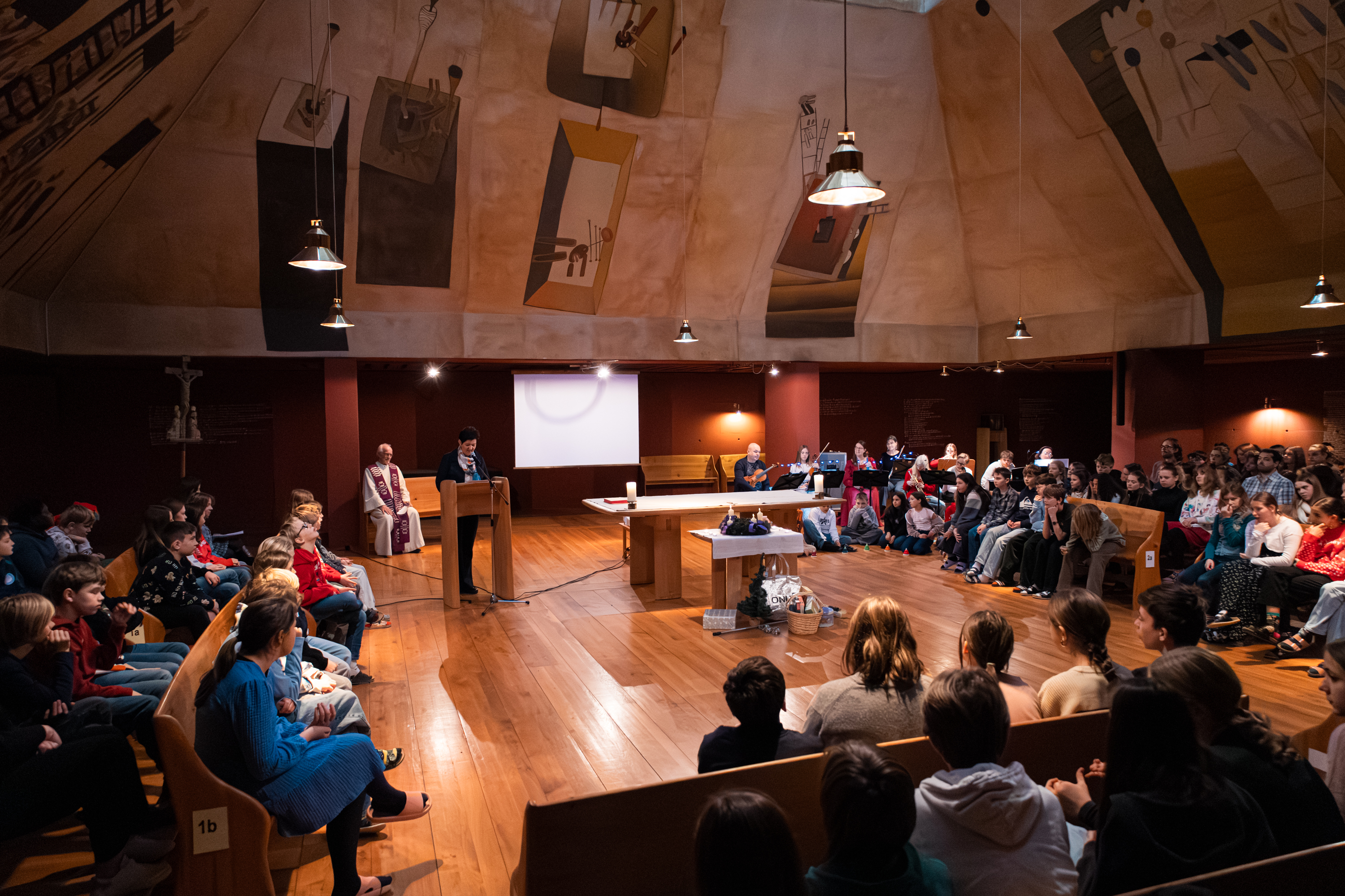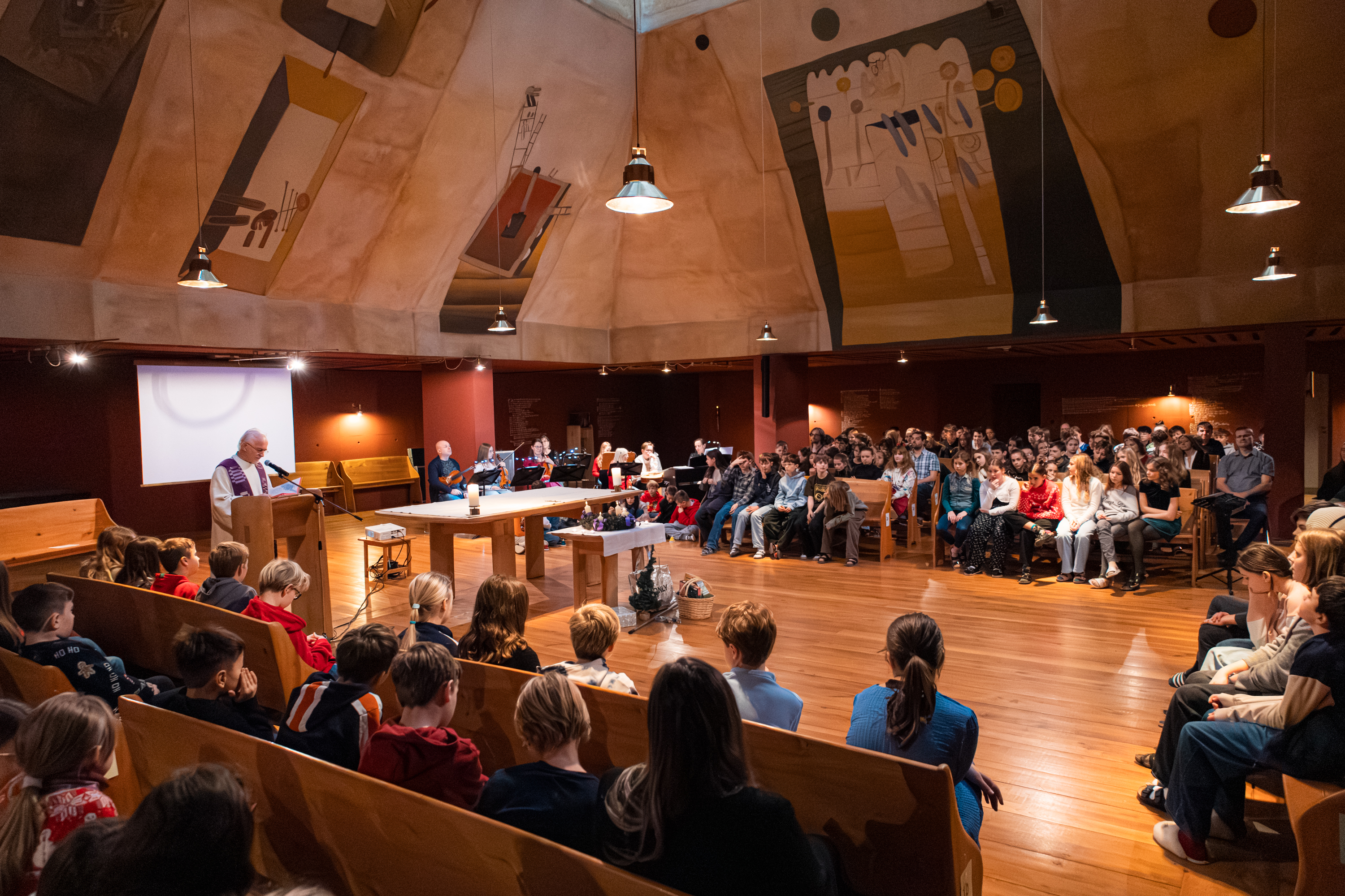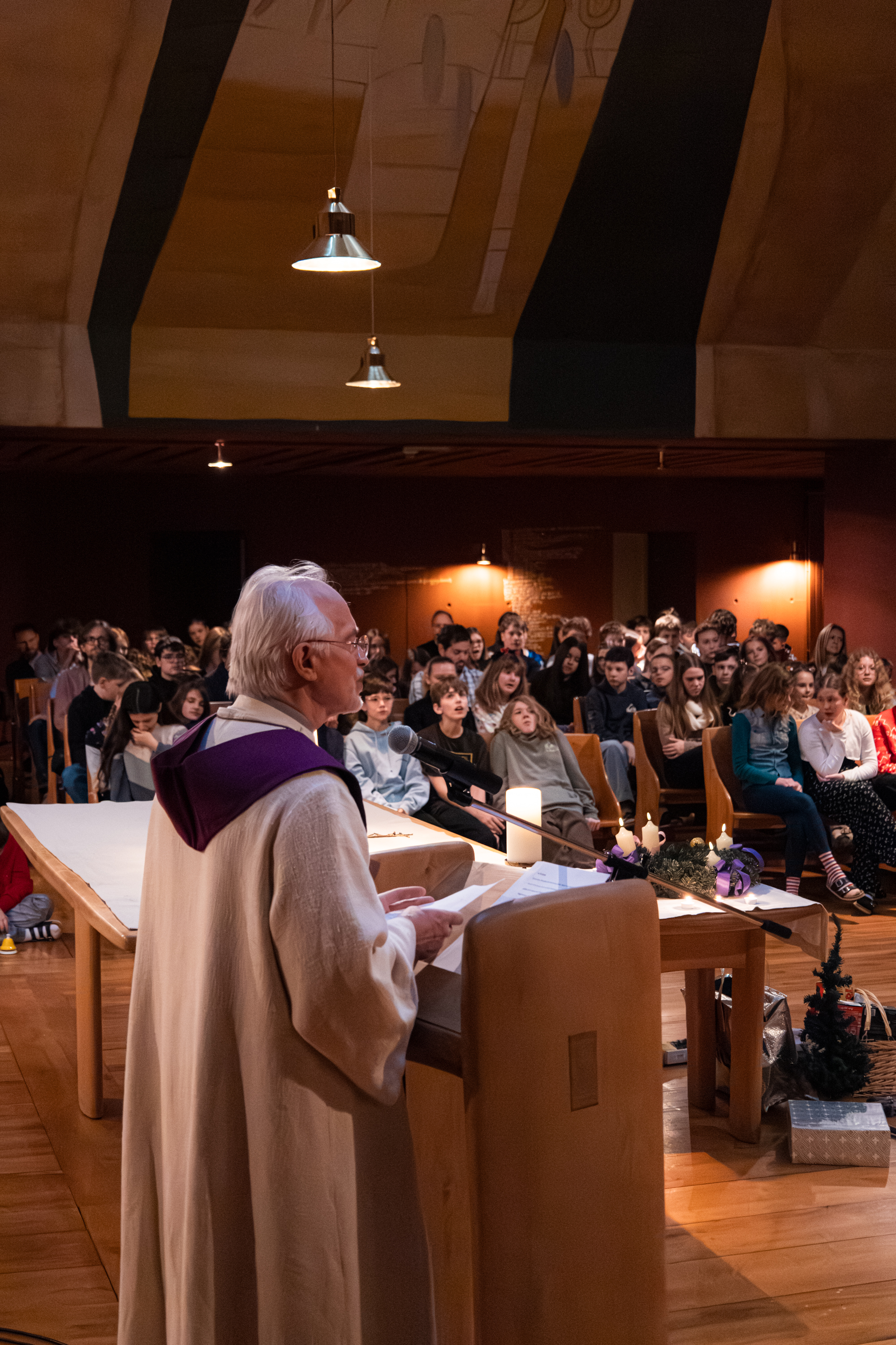 Am 23. Dezember feierten wir unseren vorweihnachtlichen Gottesdienst in der Kapelle. Unter dem Motto „Gott wird Mensch“ setzten sich die Schülerinnen und Schüler der 1. Klassen mit der Frage auseinander, wo Gott in unserem oft hektischen Alltag eigentlich zu finden ist.