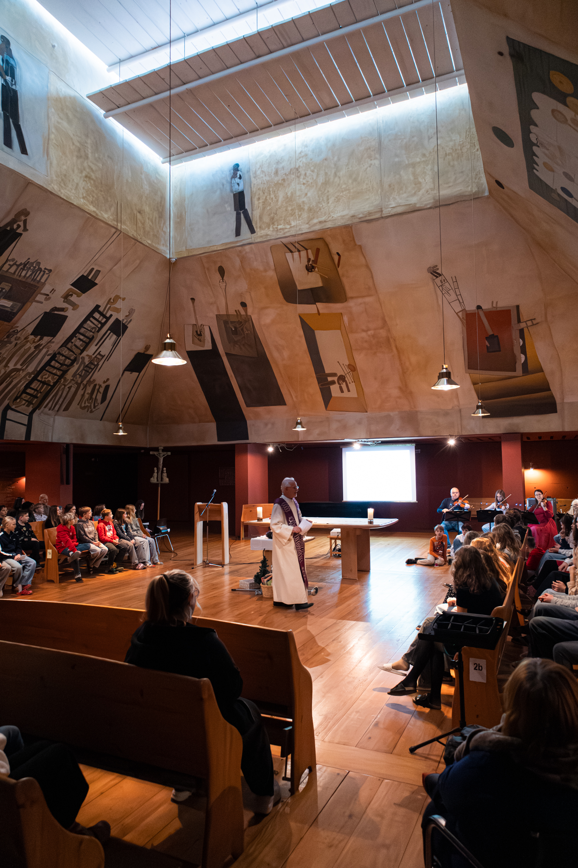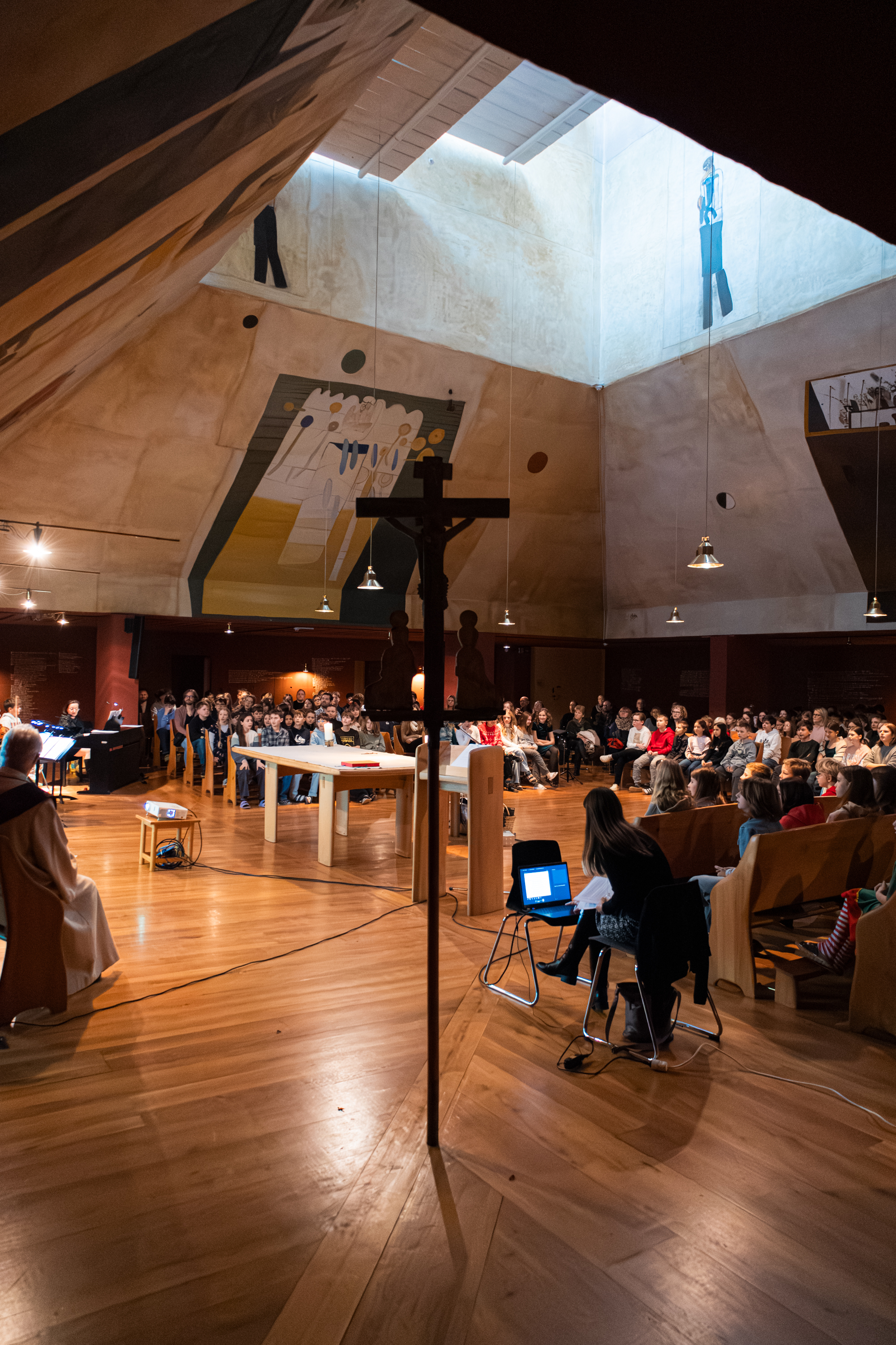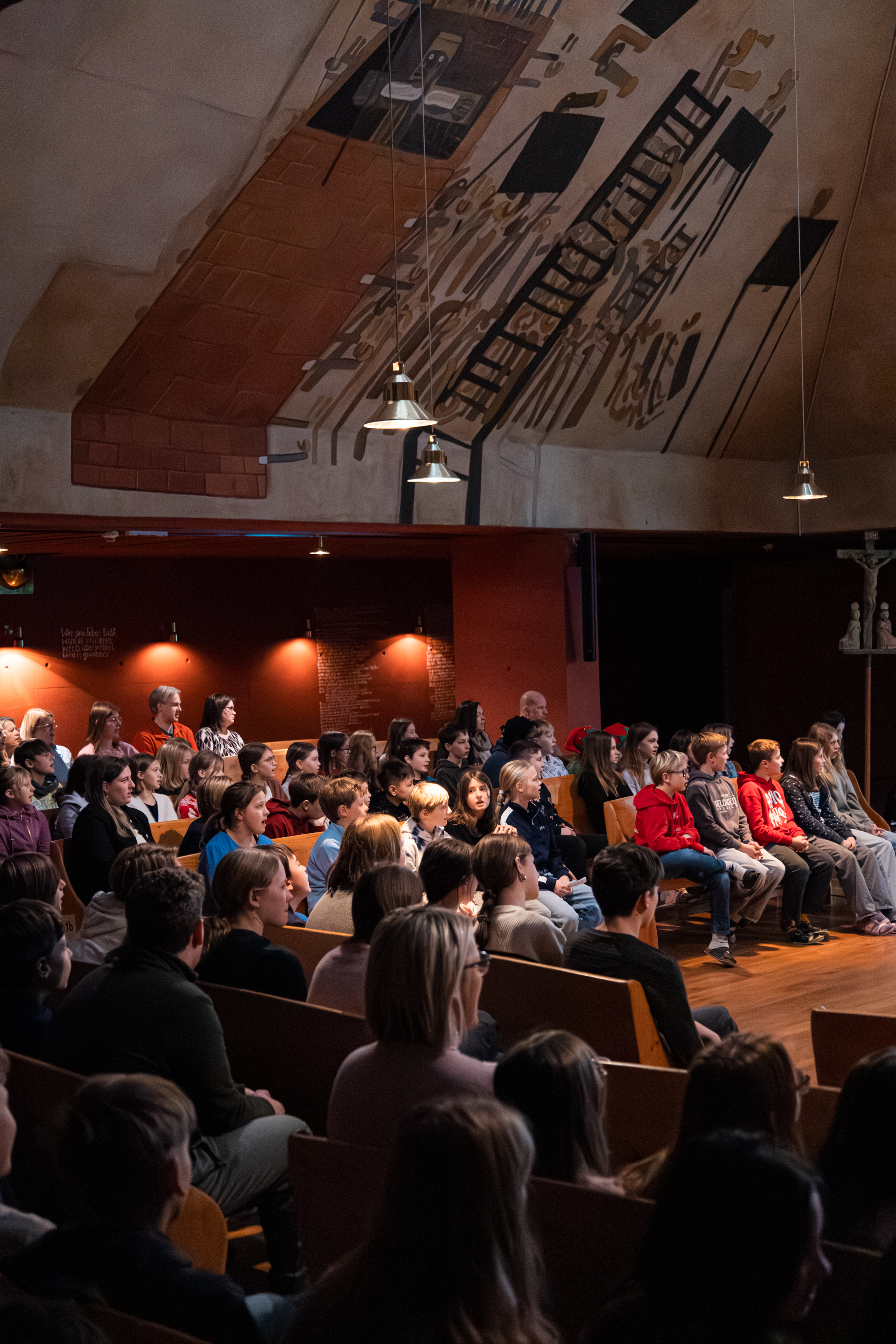 Am 23. Dezember feierten wir unseren vorweihnachtlichen Gottesdienst in der Kapelle. Unter dem Motto „Gott wird Mensch“ setzten sich die Schülerinnen und Schüler der 1. Klassen mit der Frage auseinander, wo Gott in unserem oft hektischen Alltag eigentlich zu finden ist.