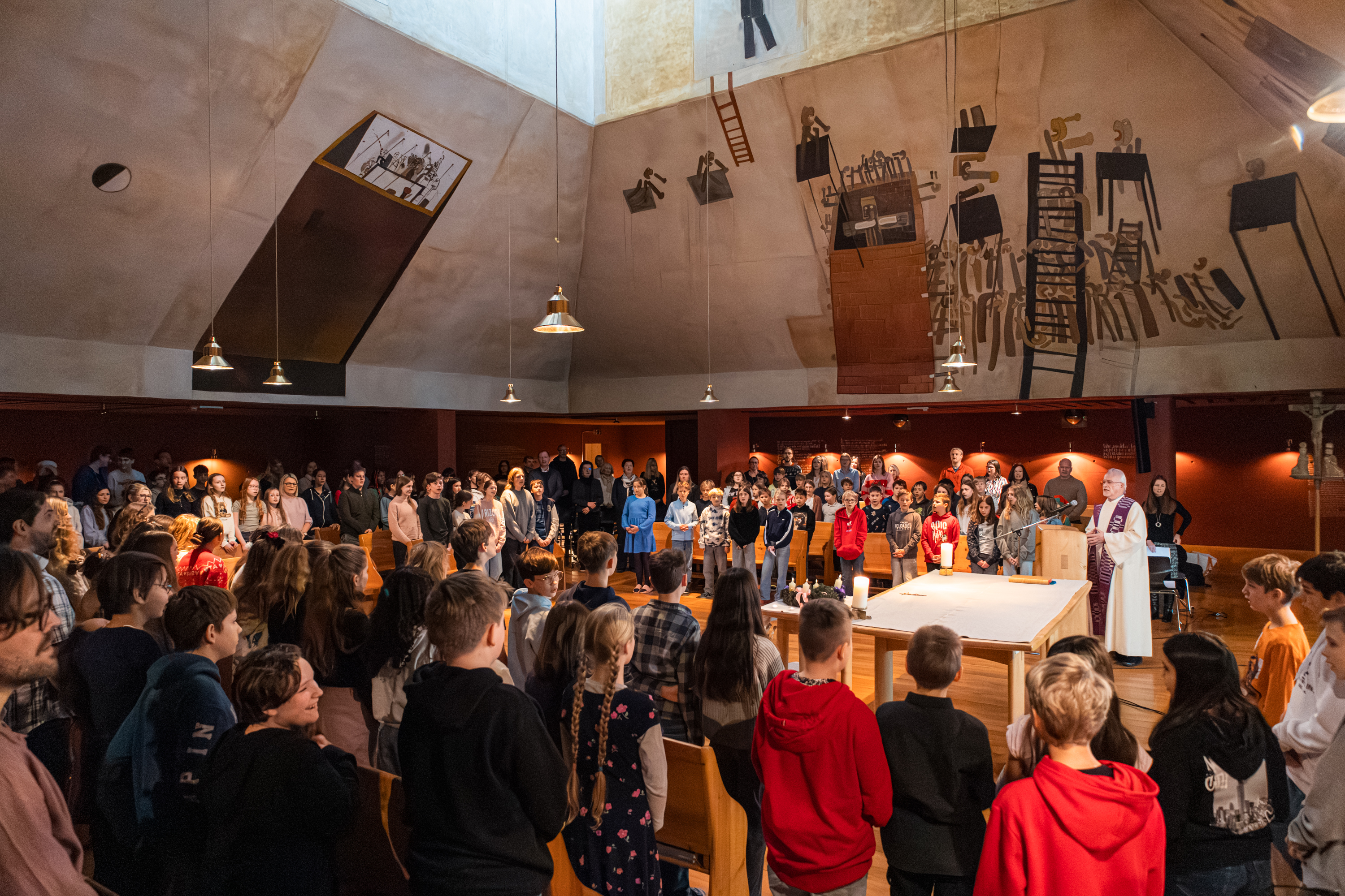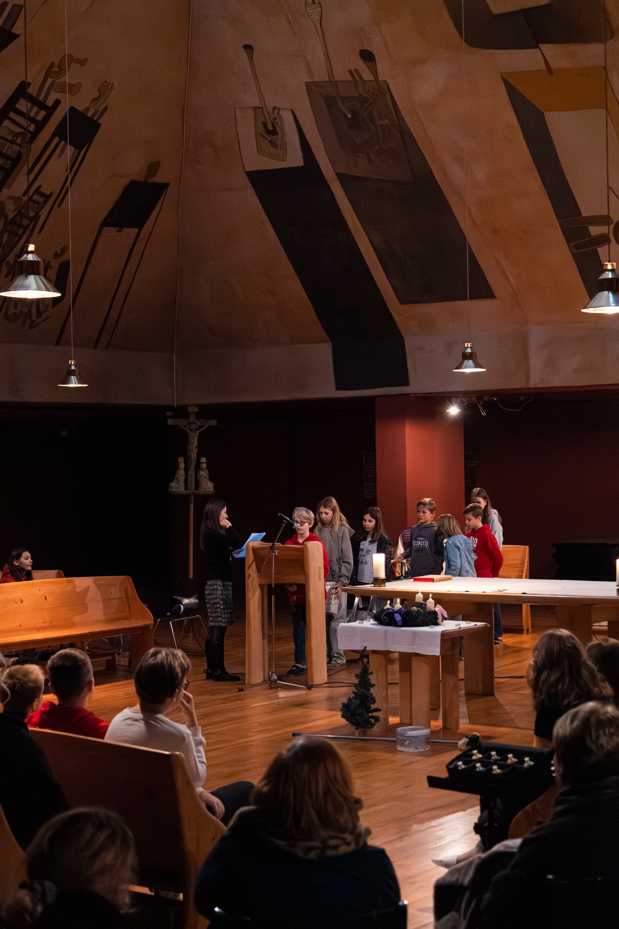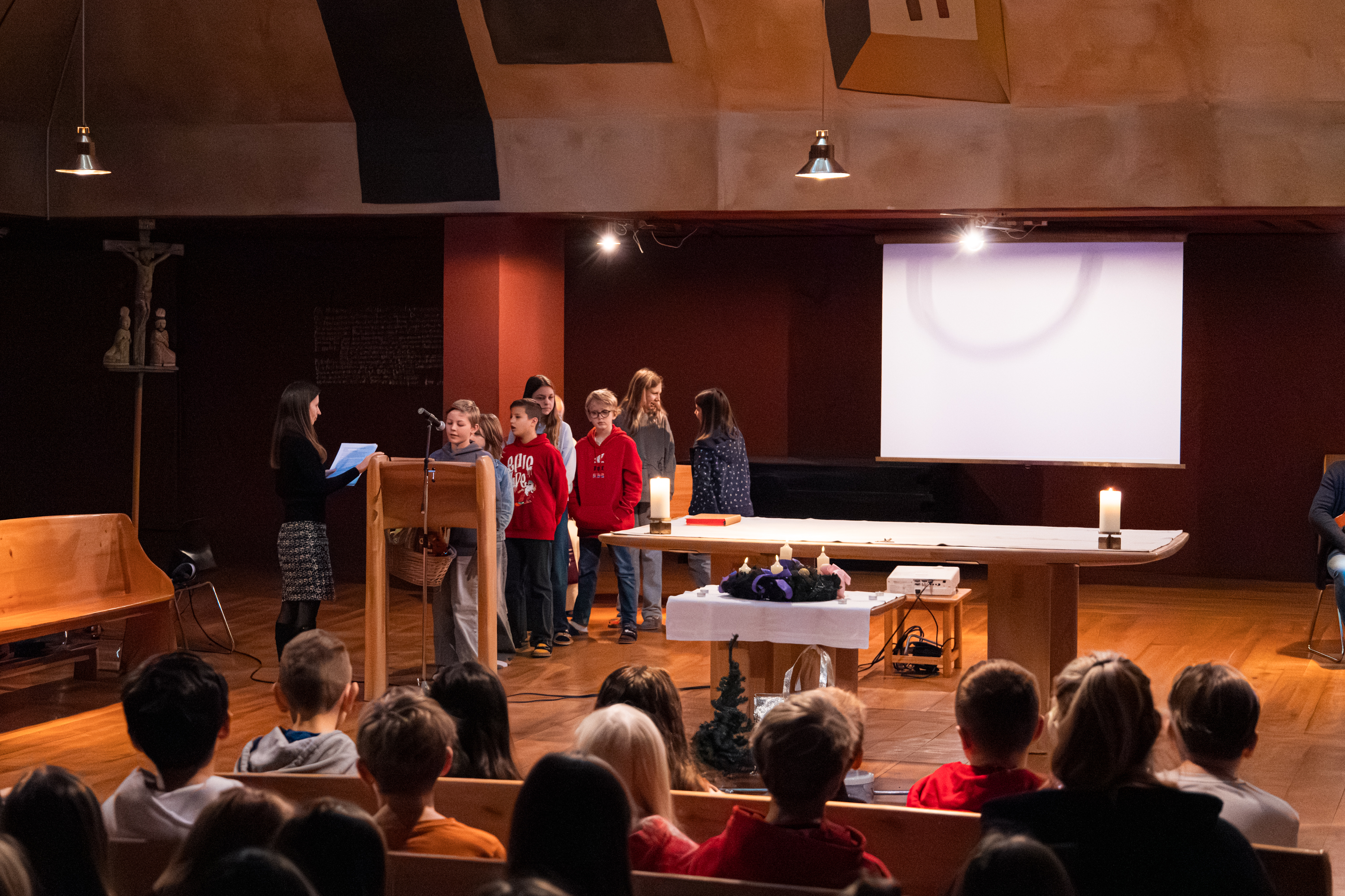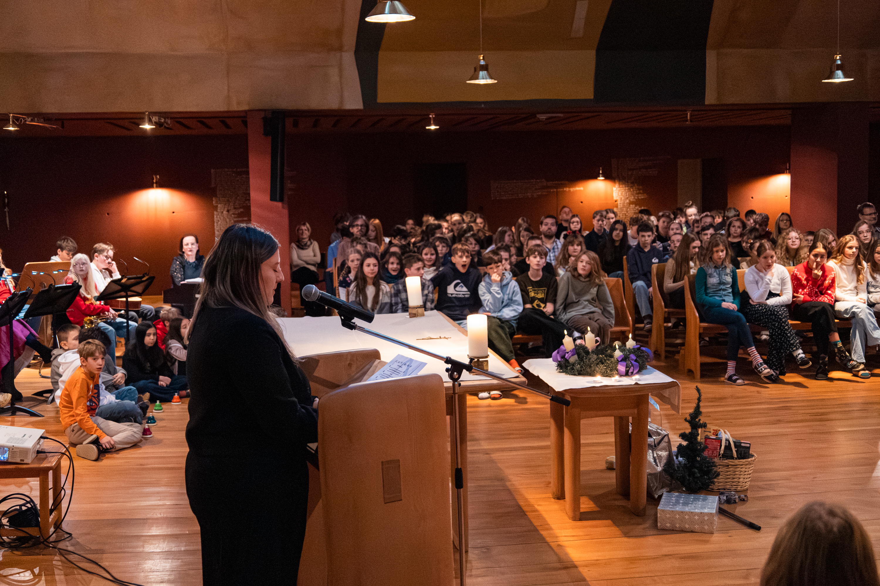 Der Gottesdienst begann mit einem Rückblick auf den typischen Vorweihnachtsstress: Vom Geschenken über das Kekse backen bis hin zum Festmenü-Einkauf – oft scheint die Liste der Erledigungen endlos. Doch die Kinder lenkten den Blick schnell auf das Wesentliche.