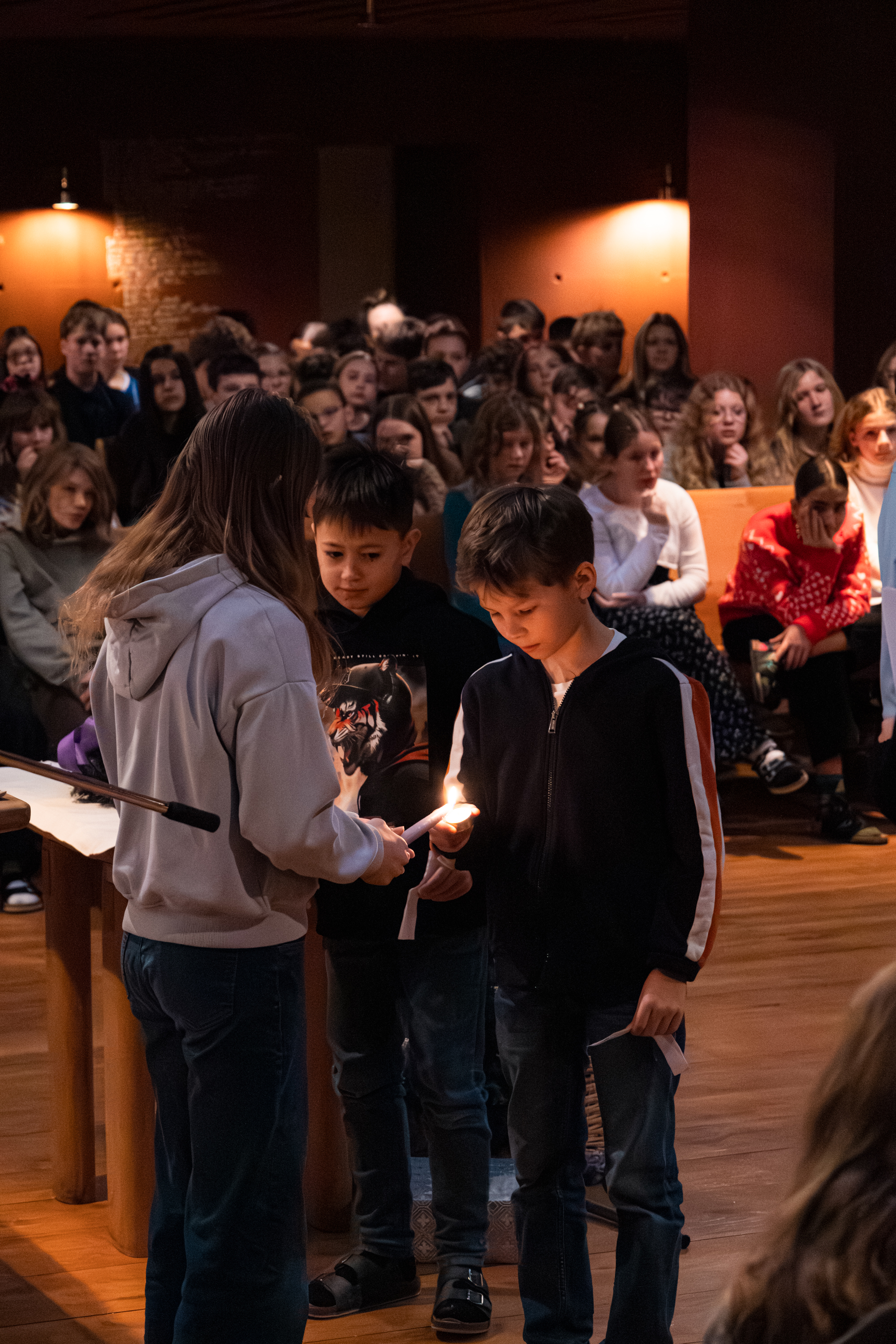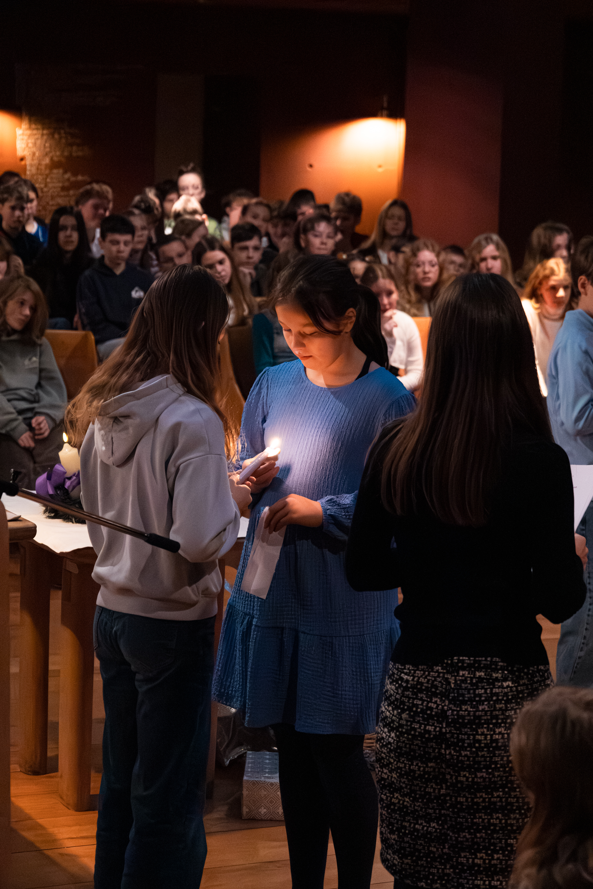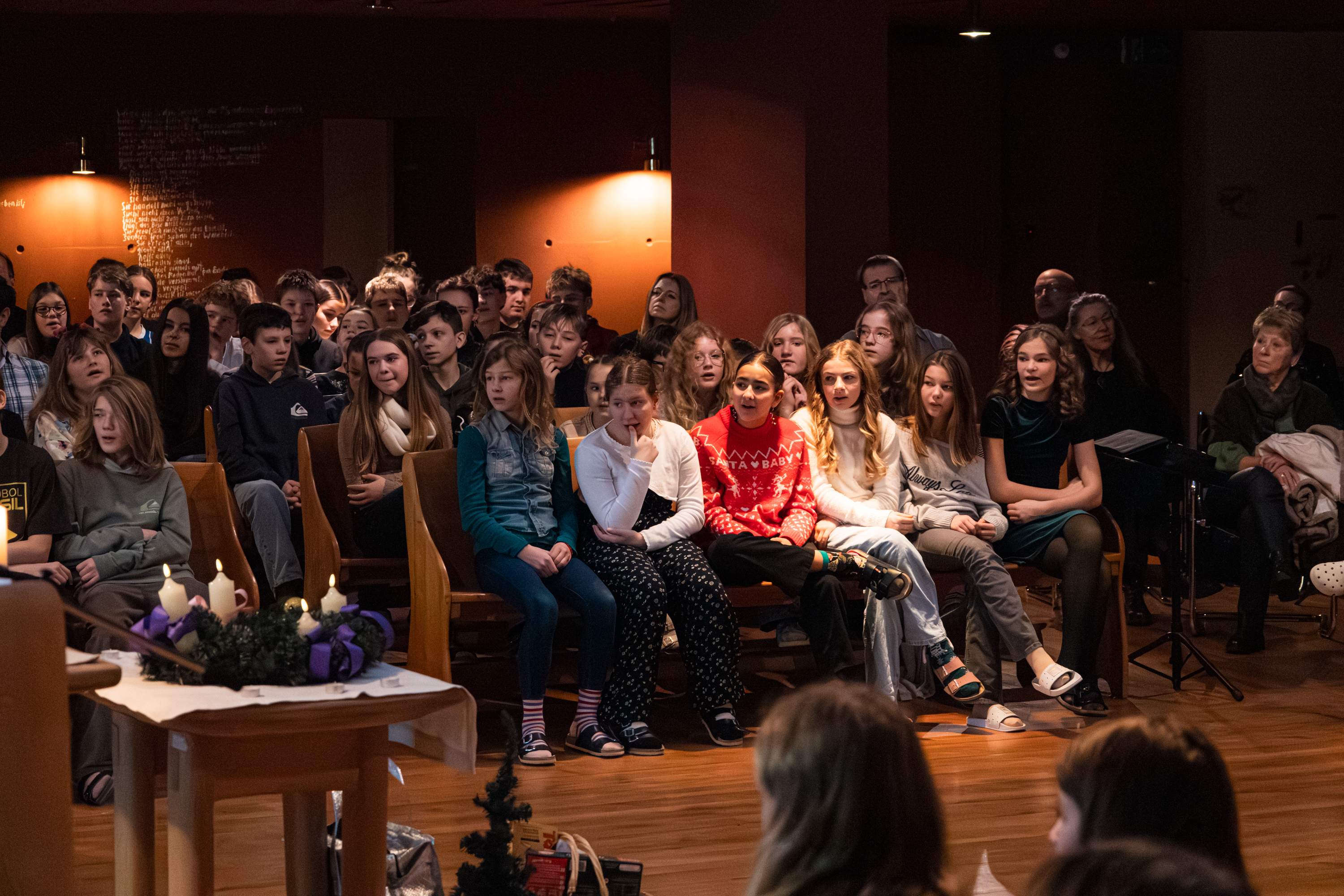 Begleitend zu diesen Gedanken wurde für jede persönliche Erfahrung eine Kerze entzündet. Ob in der Freude über gute Note bei einer Schularbeit oder im Vertrauen zu einem guten Freund – die vielen Lichter in der Kapelle machten deutlich: Gott wird dort Mensch, wo wir einander mit Liebe und Hilfsbereitschaft begegnen.